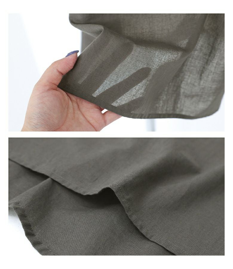 オフホワイトにしたのですが他の色の方がよかったかも。 かなり皺の目立つ生地なので、アイロンなしだと白は単純にだらしない感じに見えてしまって少し残念。