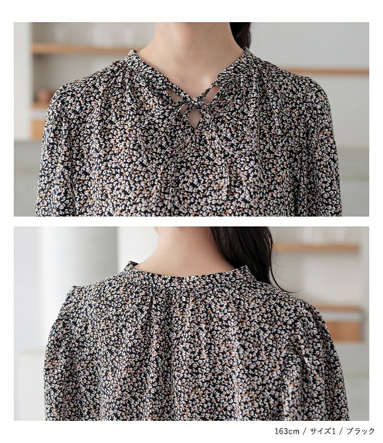 選べる2サイズ展開!小花柄のさらりとした風合いブラウス。