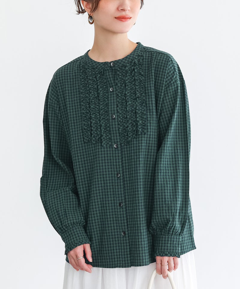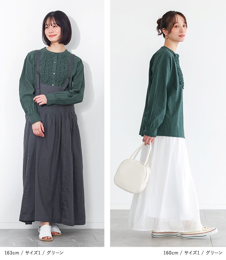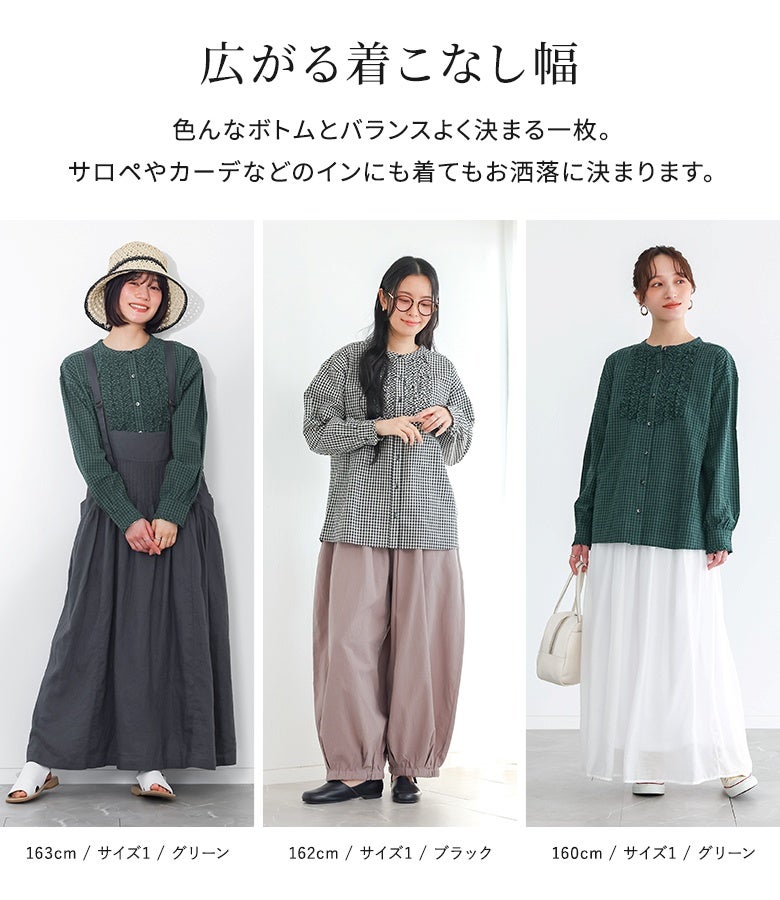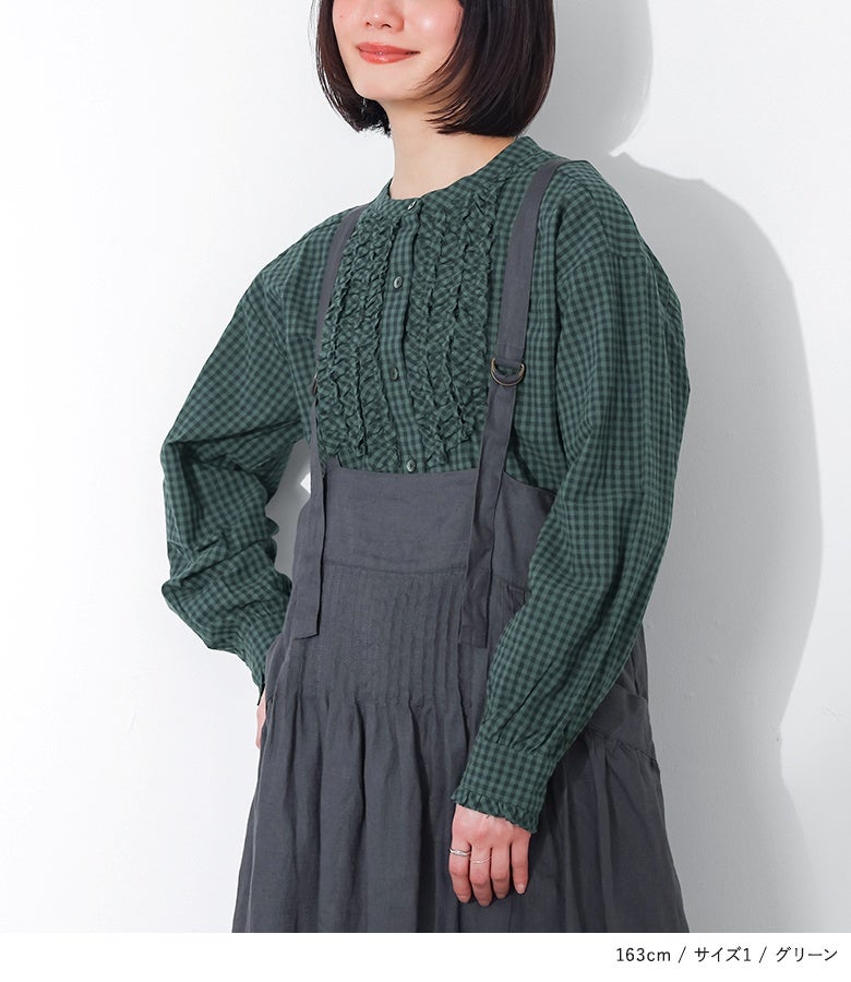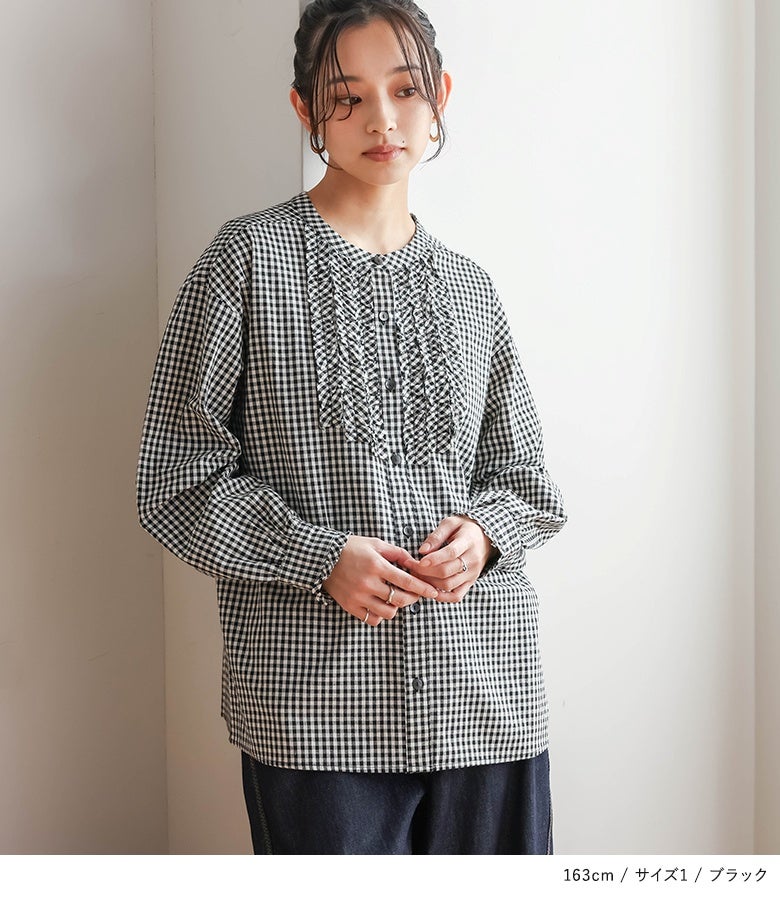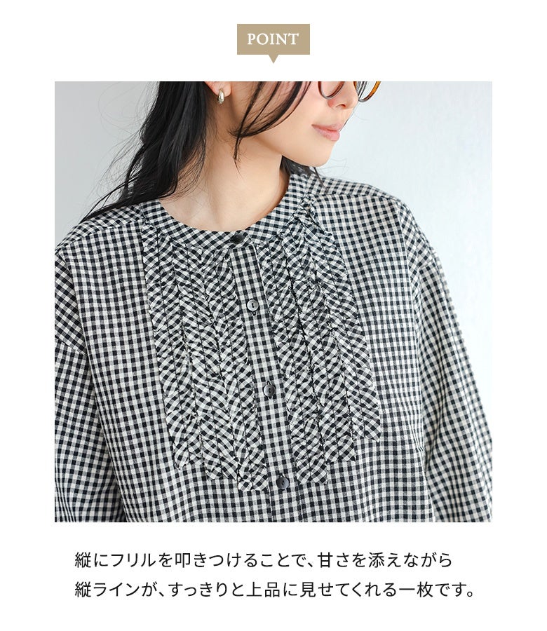 胸元のフリルが素敵で1枚でも可愛く着用できます。