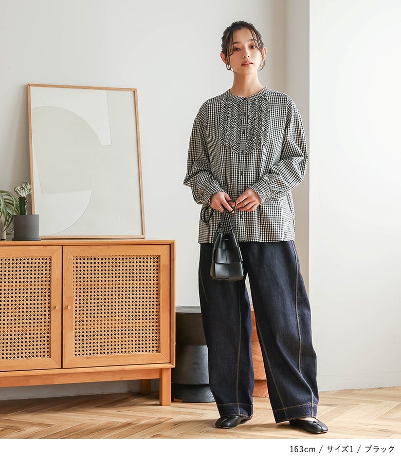 【普段着用】 Tops: S/M Bottoms:S/M | 【1】 袖丈:手の甲が隠れる位 着丈:ヒップがちょうど隠れる位 腕周り:ややゆったり バスト:ややゆったり 全体:ややゆったり