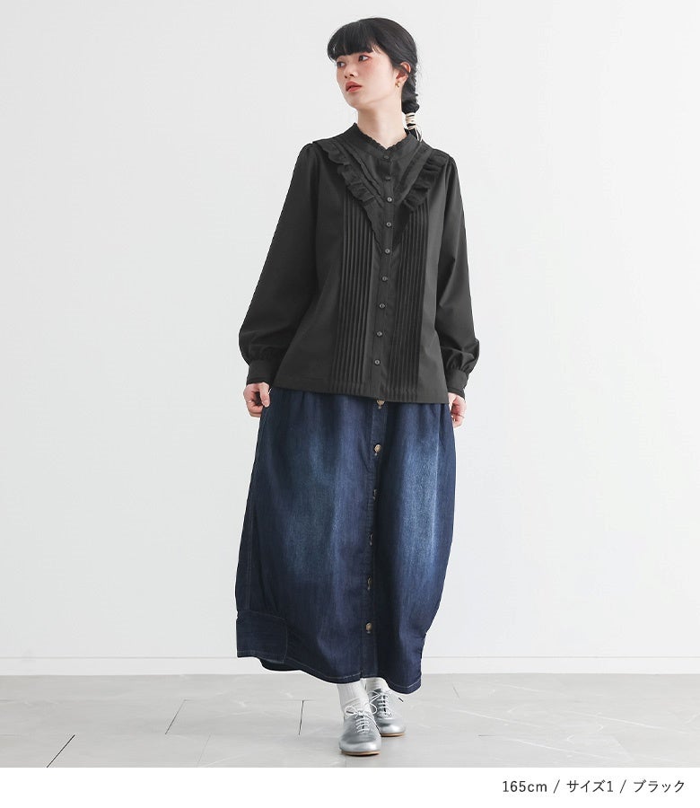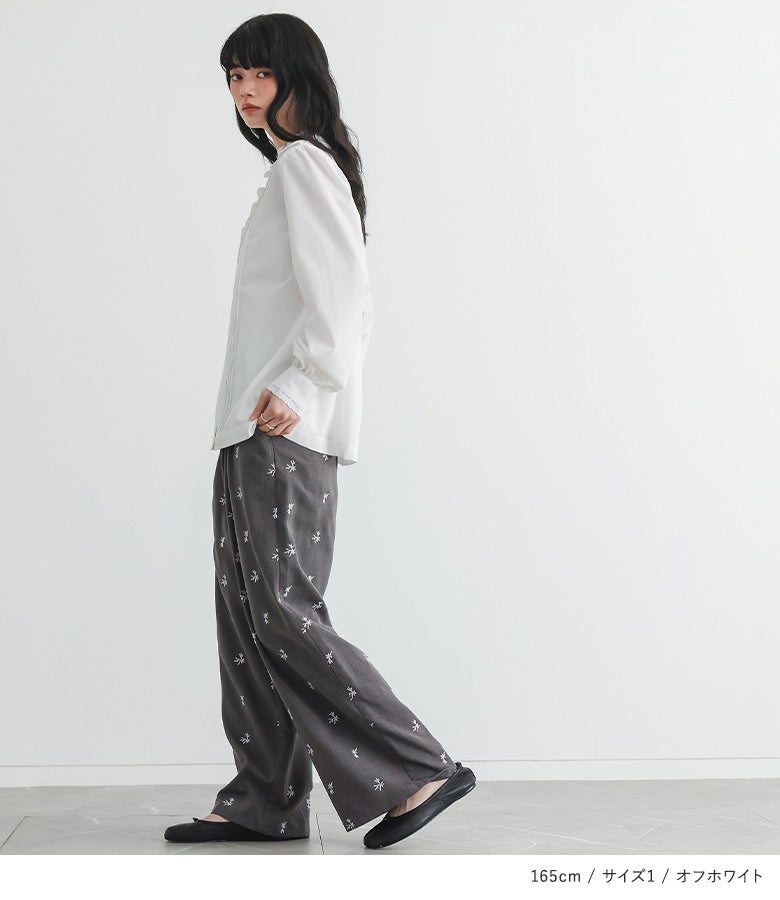 【2】 袖丈:手首位 着丈:ヒップ真ん中より上位 腕周り:ややゆったり バスト:ゆったり 全体:ゆったり
