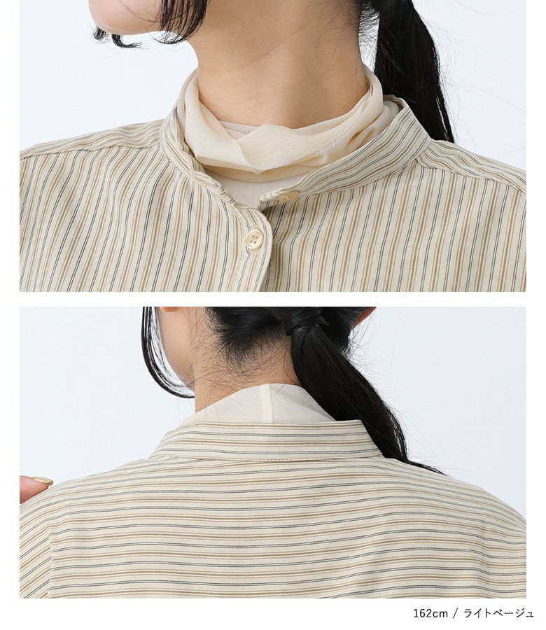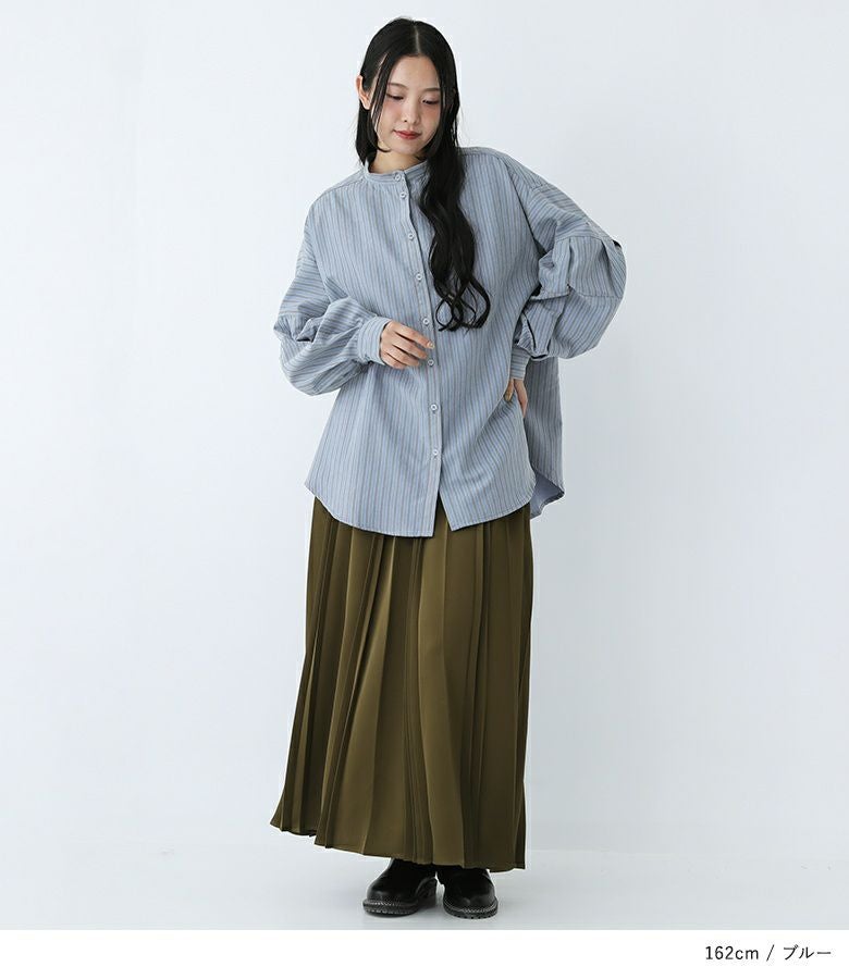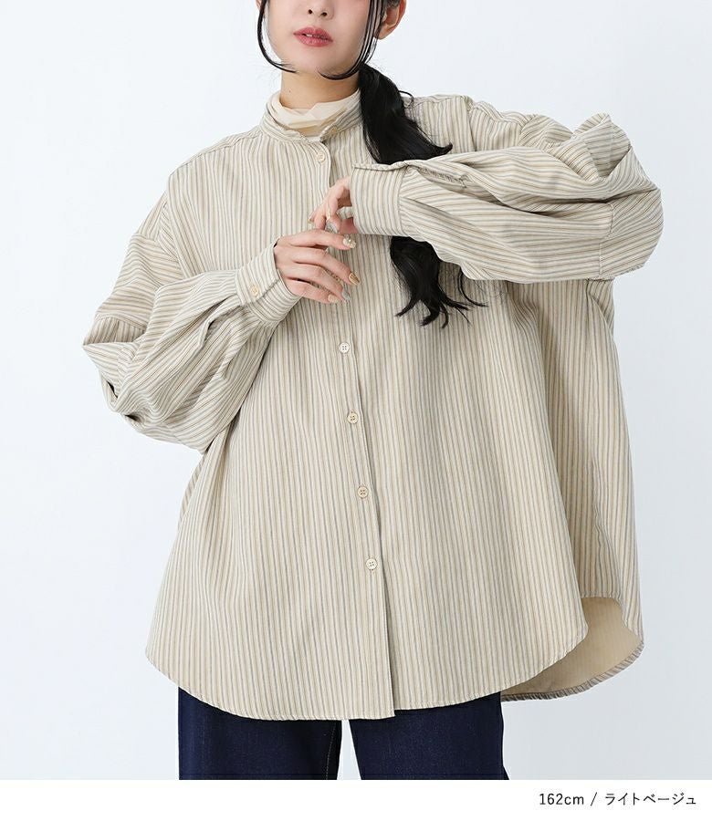 ボリューム袖が着映える、ストライプ柄生地のブラウス。袖にタックが入って印象的なぽわん袖デザインです。ストライプがすっきり見えを叶える上品デザイン。後ろの着丈が長めなので気になるお尻回りもカバーしてくれます。