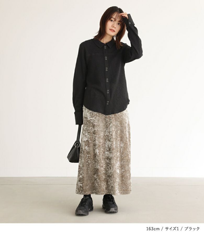 【普段着用】 Tops: S/M Bottoms: S/M | 【1】 袖丈:手の甲が隠れる位 着丈:ヒップにかかる位 腕周り:ジャスト バスト:ややゆったり 全体:ややゆったり