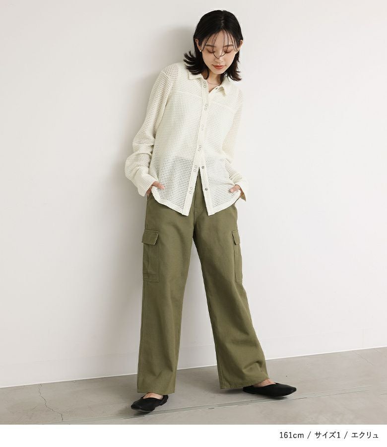 【普段着用】 Tops: L/LL Bottoms: L/LL | 【1】 袖丈:手の甲が隠れる位 着丈:ヒップ真ん中より下位 腕周り:ジャスト バスト:ジャスト 全体:ジャスト