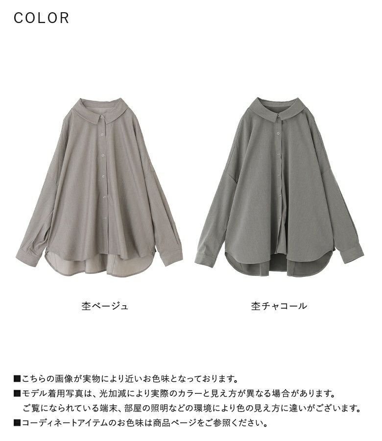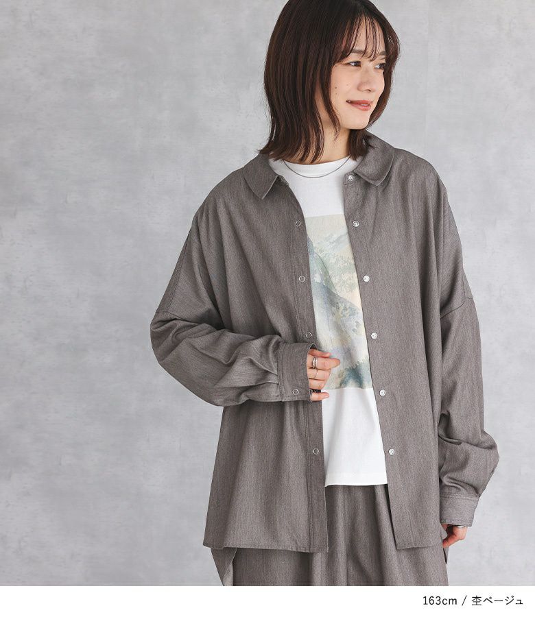 シンプルなデザインと落ち着いたカラーで、どんなボトムスにも合わせやすいシャツ。デニムを合わせてカジュアルに、ナロースカートで大人っぽく、ラフにもキレイめにも合わせられます。ラウンドしたヘムデザインで、レイヤードもお洒落に決まります。羽織としても使える、コーデの幅が広がるアイテムです。