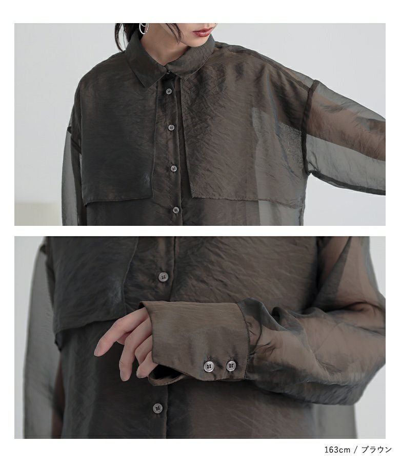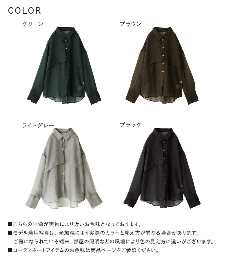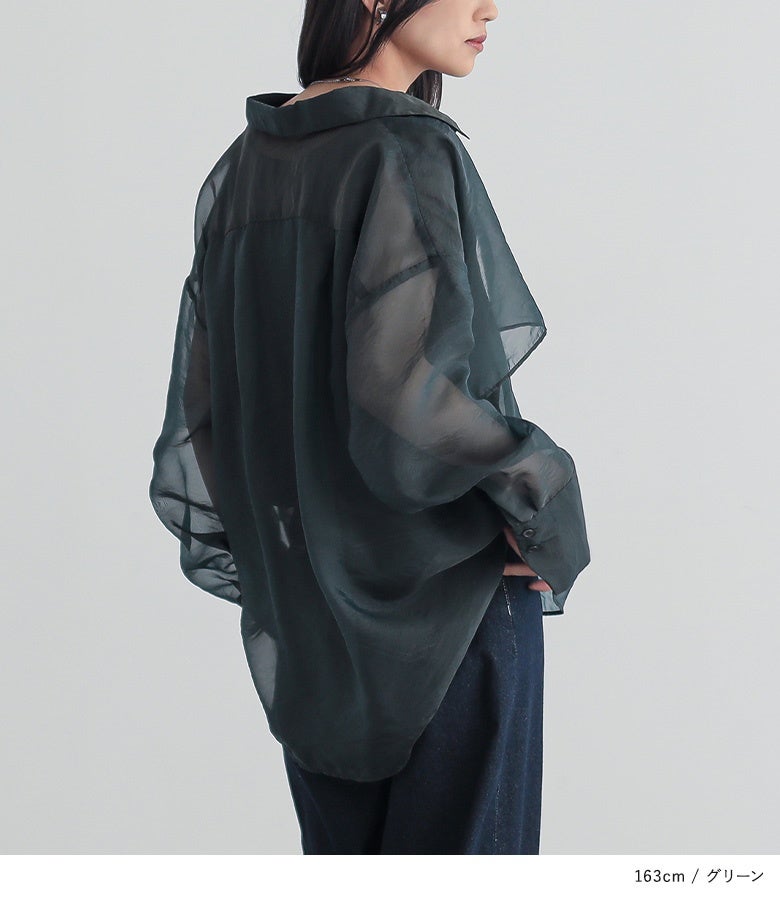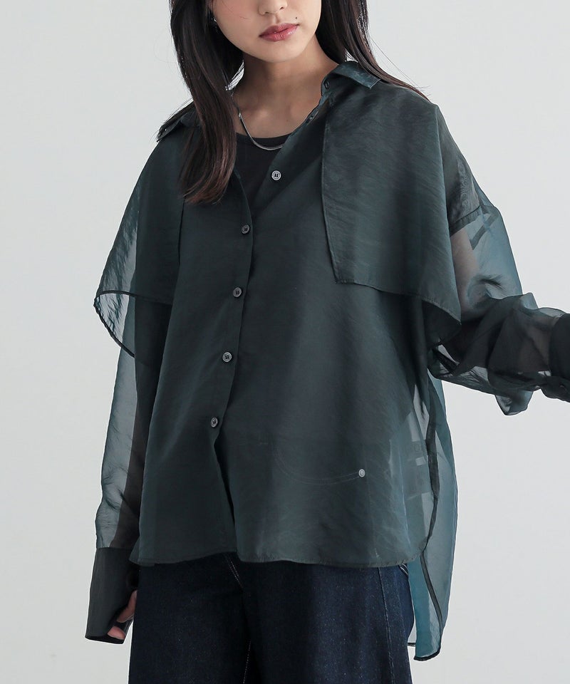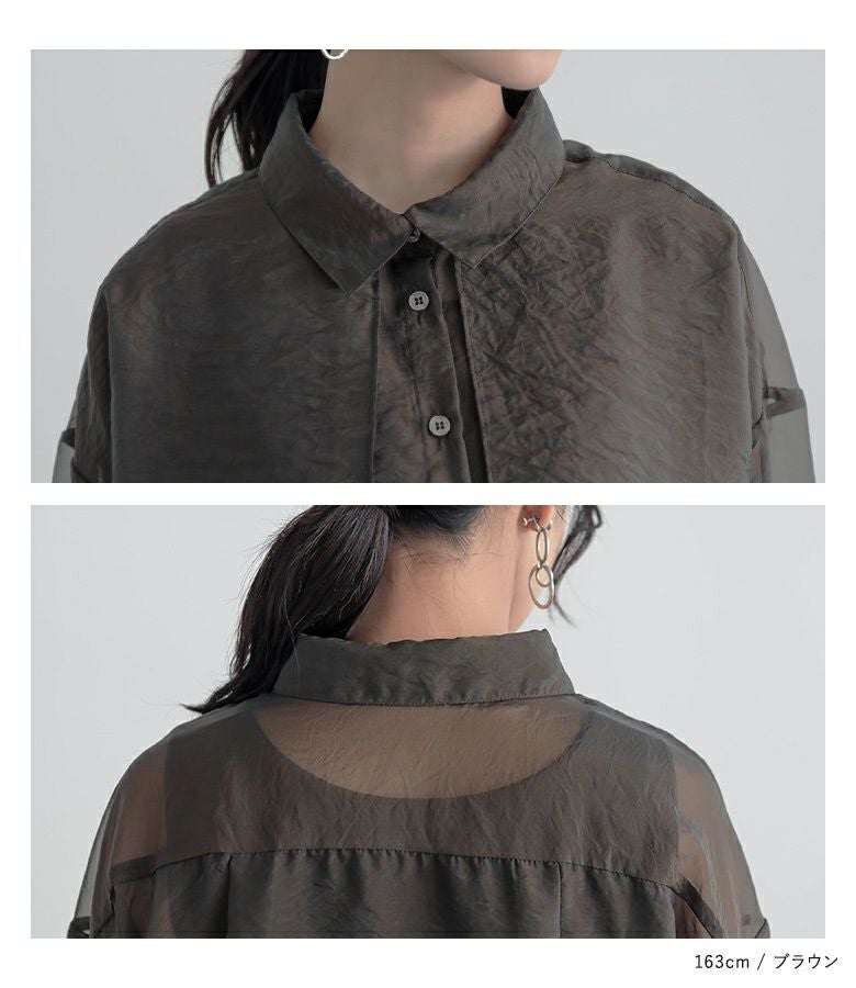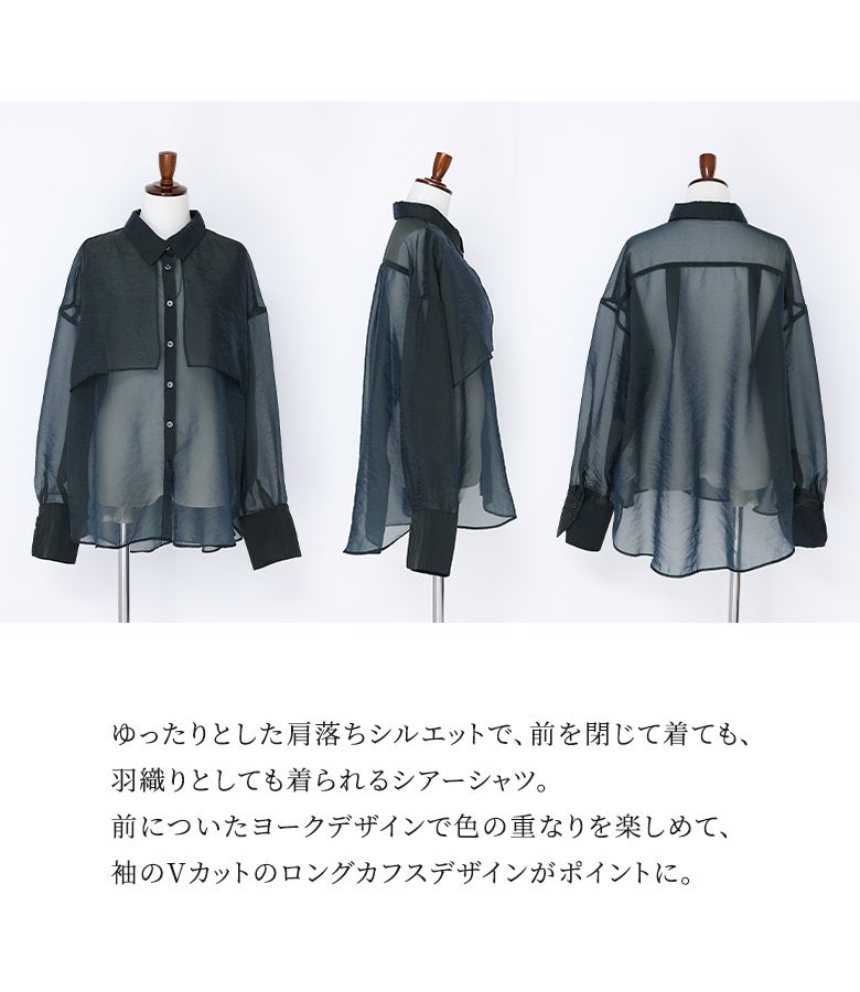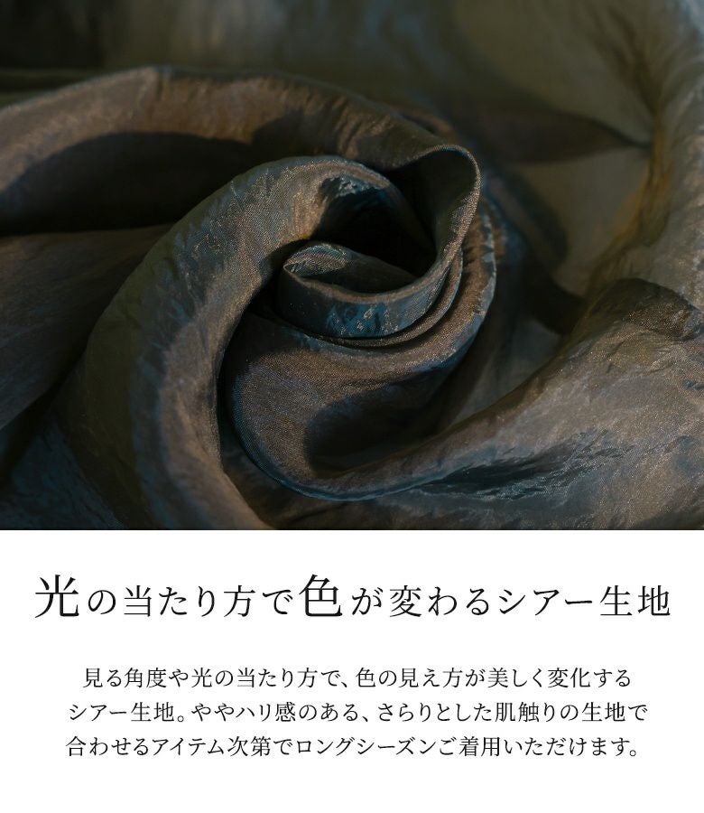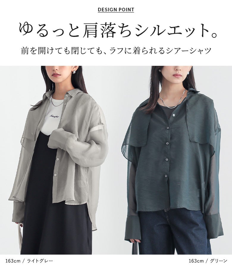 光の見え方で色が変わるシアー生地を使用した、肩落ちシルエットシャツ。