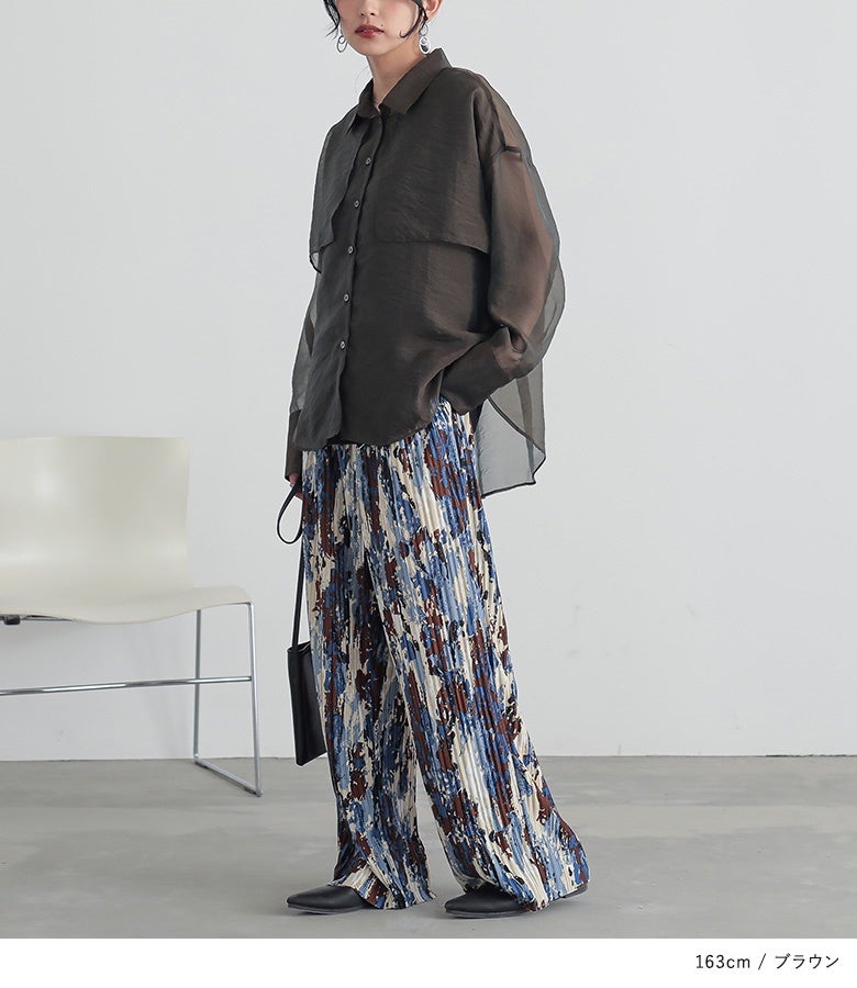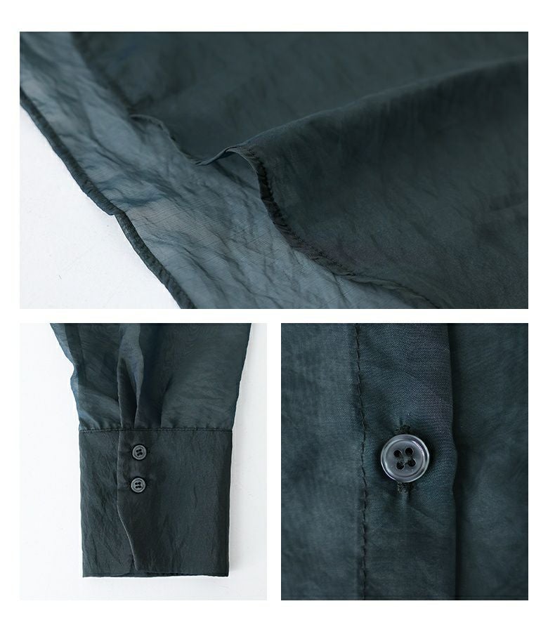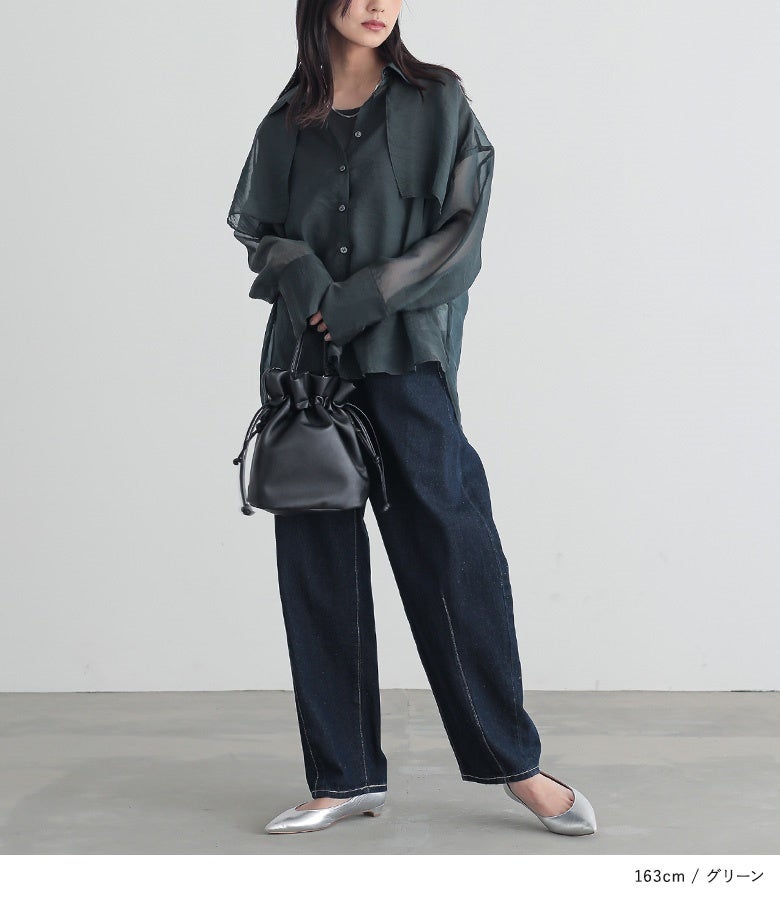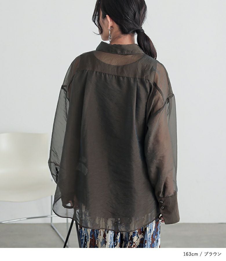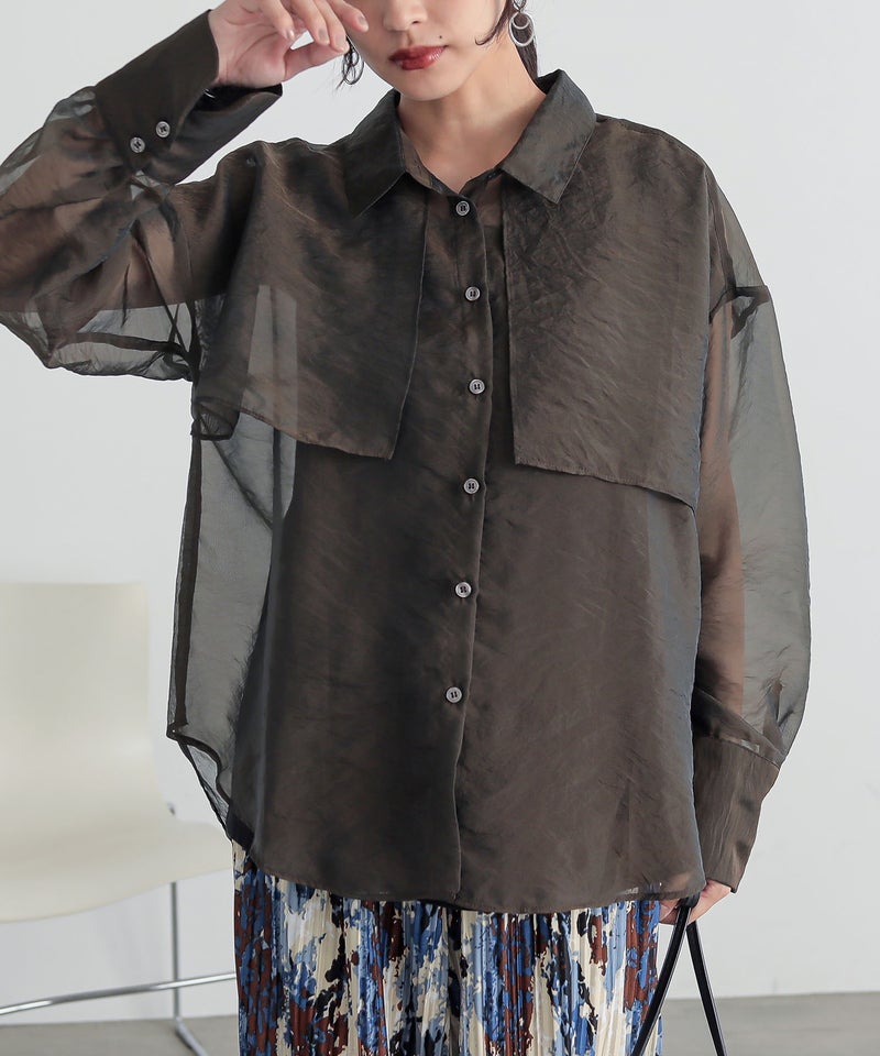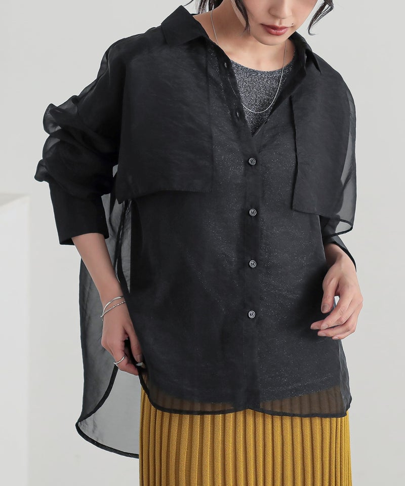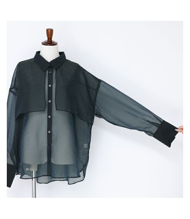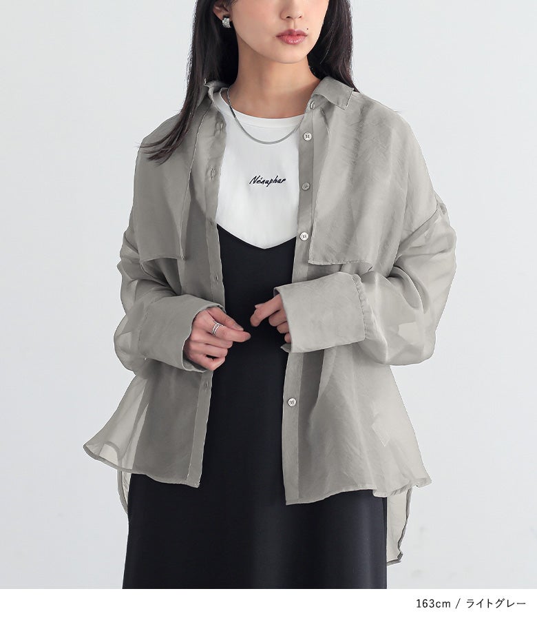 光の見え方で色が変わるシアー生地を使用した、肩落ちシルエットシャツ。