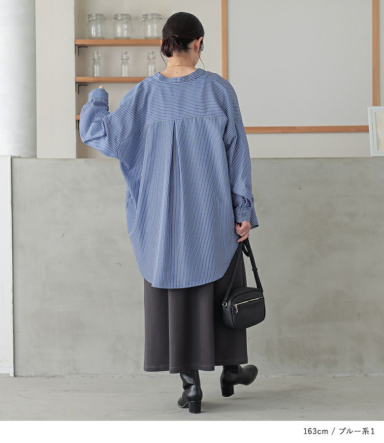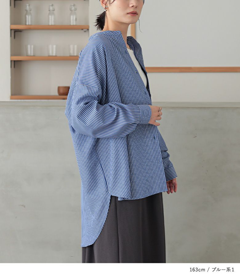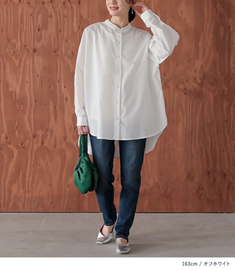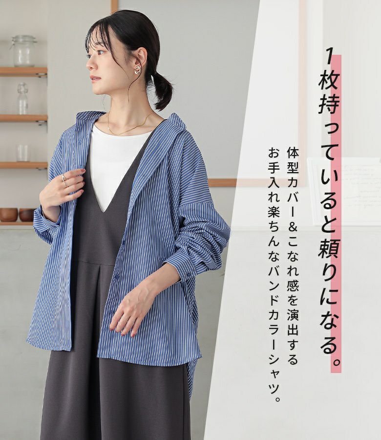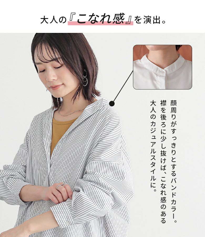 『n'OrLABEL長袖バンドカラーシャツ』