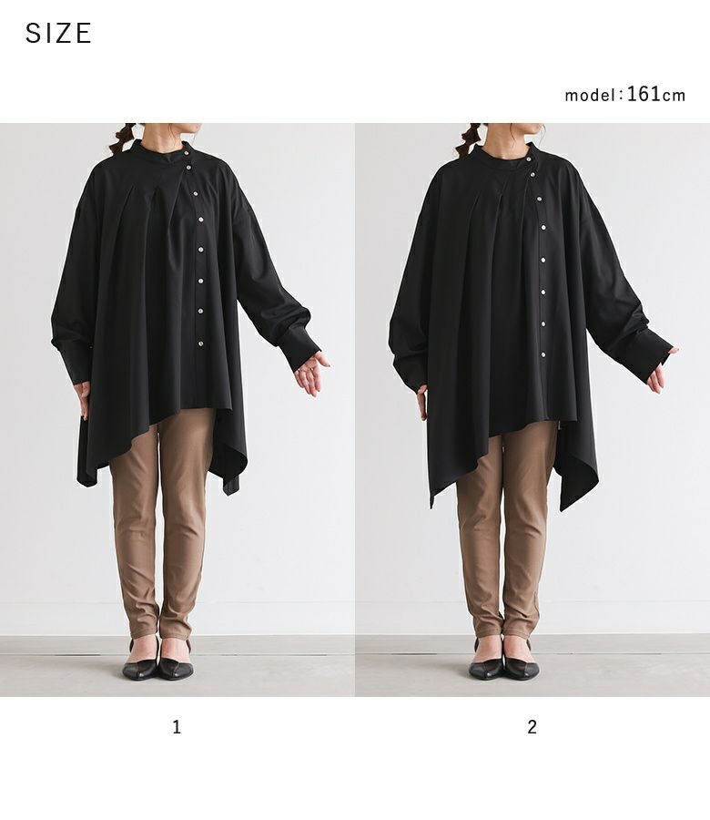 【普段着用】 Tops: M Bottoms: M/L | 【1】 袖丈:手の甲が隠れる位 着丈:ヒップ真ん中より上位 腕周り:ややゆったり バスト:ゆったり 全体:スッキリ