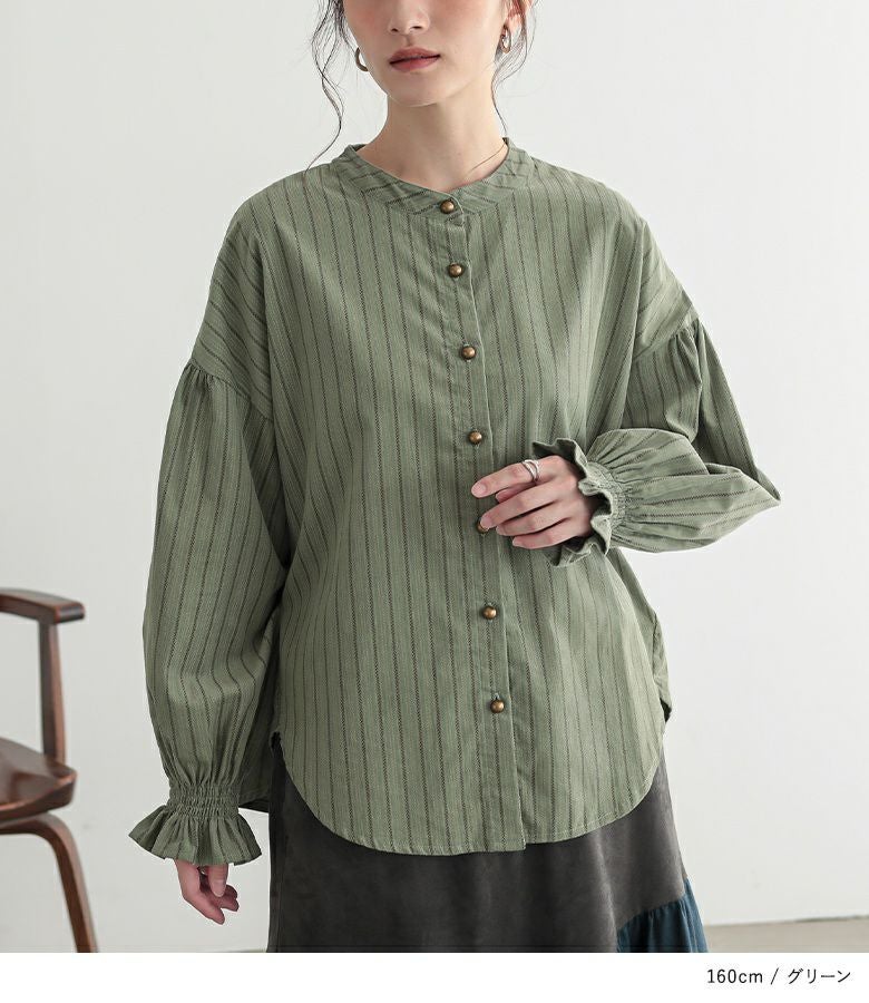 『n'OrLABELストライププリントコーデュロイブラウス』