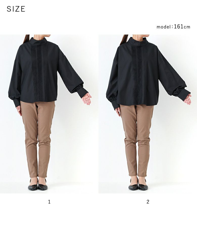 【普段着用】 Tops: M/L Bottoms:M/L | 【1】 袖丈:手の甲にかかる位 着丈:ヒップにかかる位 腕周り:ややゆったり バスト:ゆったり 全体:ややゆったり
