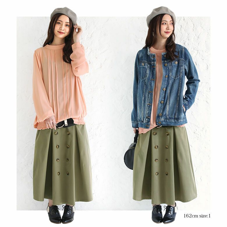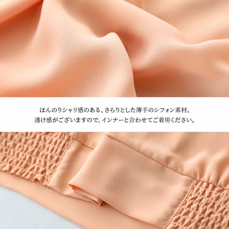 薄手のシフォン素材で大人めな生地で落ち感のあるさらっとした肌触り。ロングシーズンご着用いただけます。