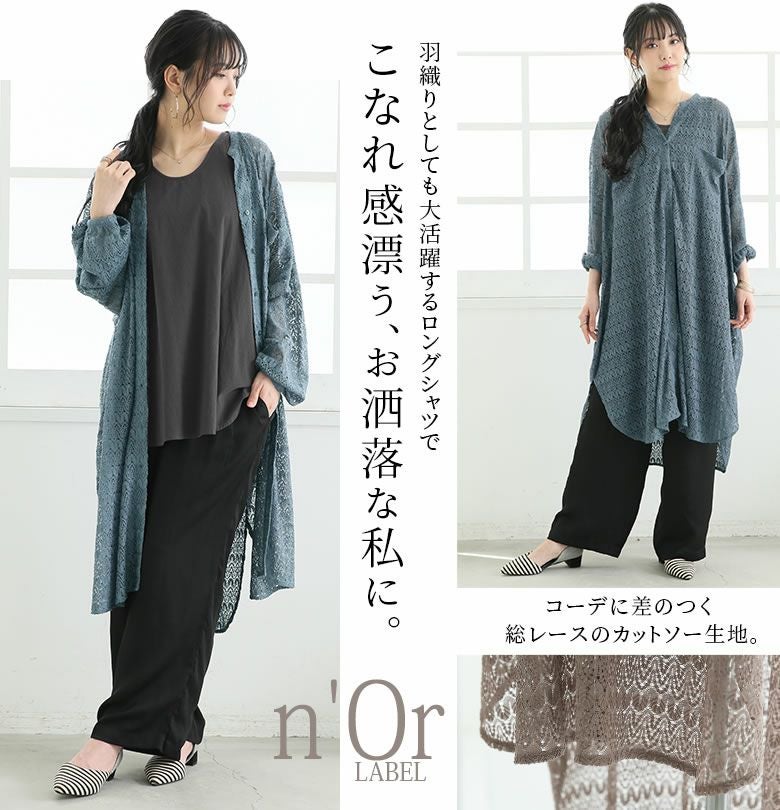 大人のこなれ感を高める≪n'OrLABEL≫カットソーレースロングシャツです。