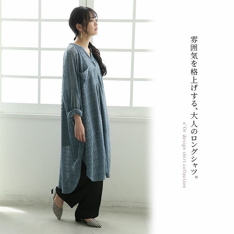 雰囲気を格上げ、大人の総レースロングシャツ♪