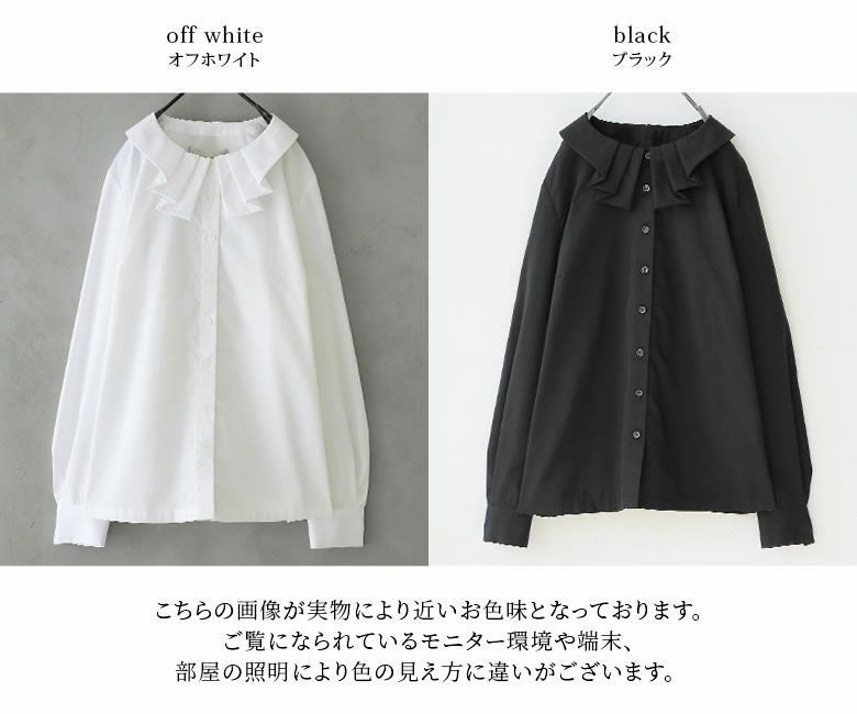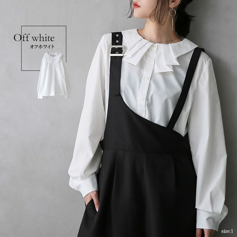 158cm/44kg 袖丈は手の甲にかかるくらいでほぼほぼ写真の通りでしたが、首周りに少しゆとりが出来てしまいシャツインする際には気持ち後ろに引っ張りながらボトムスに入れた方が綺麗に着用できました。 シンプルだけど個性的なタック襟が可愛く、 デコルテ周りに少しボリュームが出るため お気に入りです。 鎖骨が見えない程度ですが、首元が空いているので寒い日はマフラー必須、もしくは中にハイネックのインナーを着ています。写真のモデルさんの様に短めの華奢なネックレスを付けても可愛かったです。 どんなボトムスやアウターにも合わせやすく、フォーマルにもカジュアルにも着こなせるため着回ししやすい印象です。 生地が程よい薄さで季節を問わない素材なのでロングシーズン着れると思います。