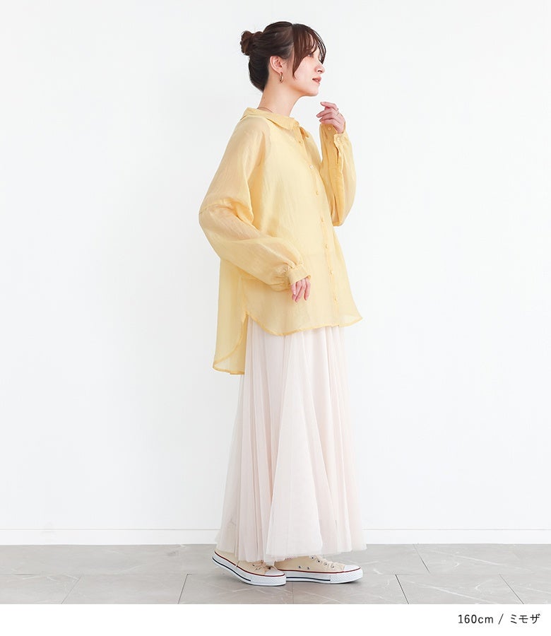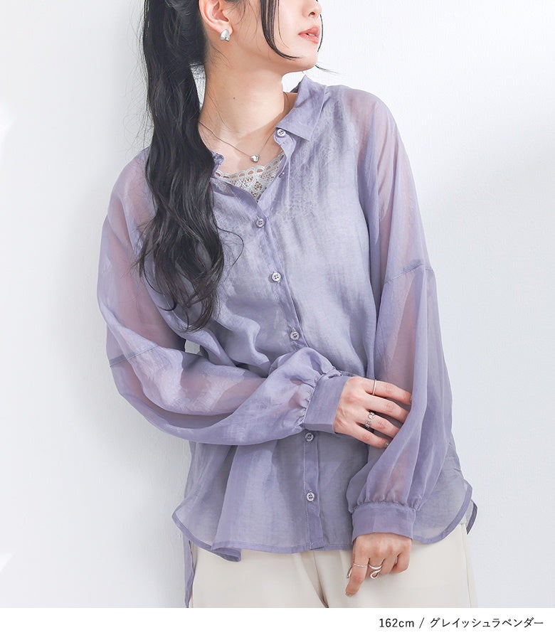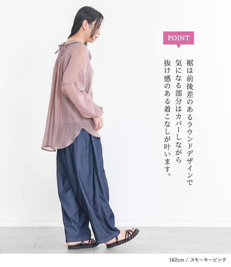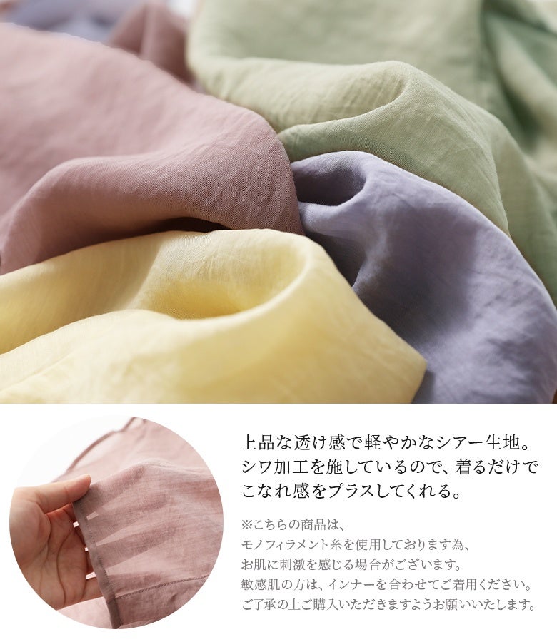 上品な透け感のある軽やかな生地にシワ加工を施すことで、着るだけでこなれ感漂う雰囲気に仕上げました。