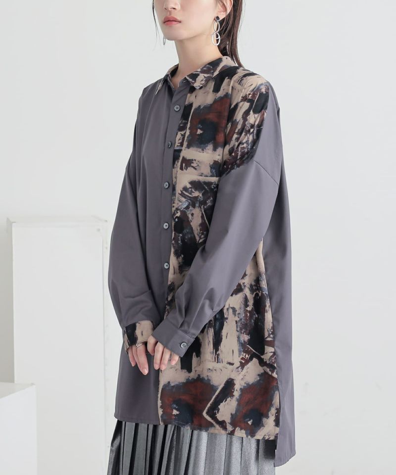 柔らかで心地よいプリント生地に、風合いのある無地のシャツ生地をドッキングした異素材MIXで差をつける。