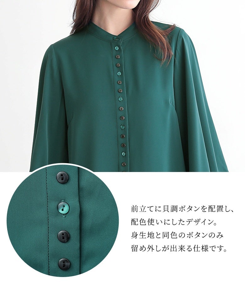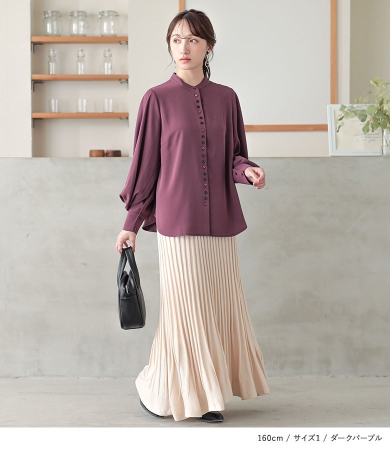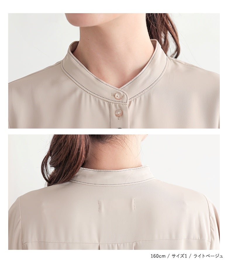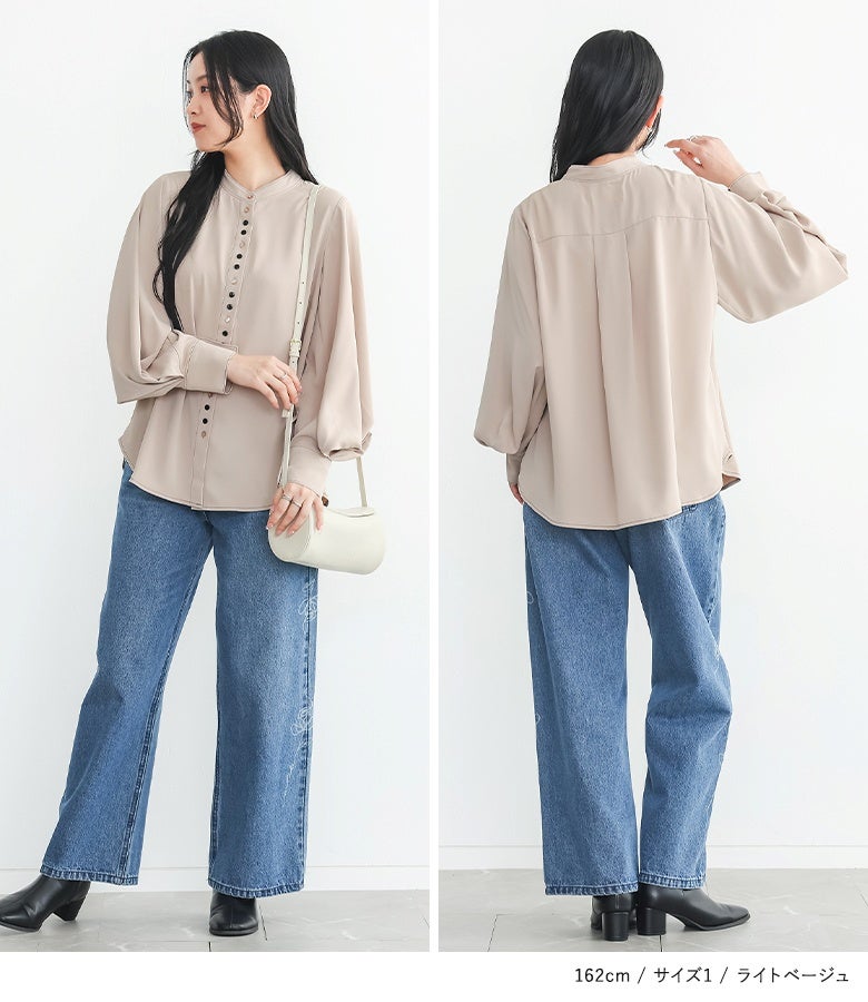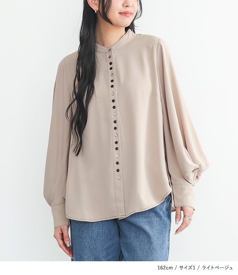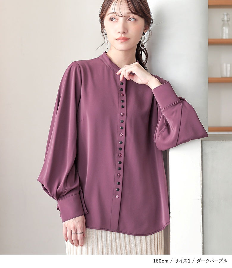 "袖コンシャス"なデザインが、着こなしに華を添えてくれる、バンドカラーブラウス♪
