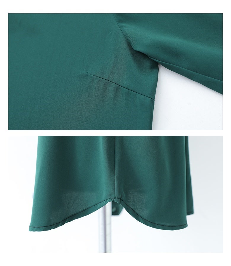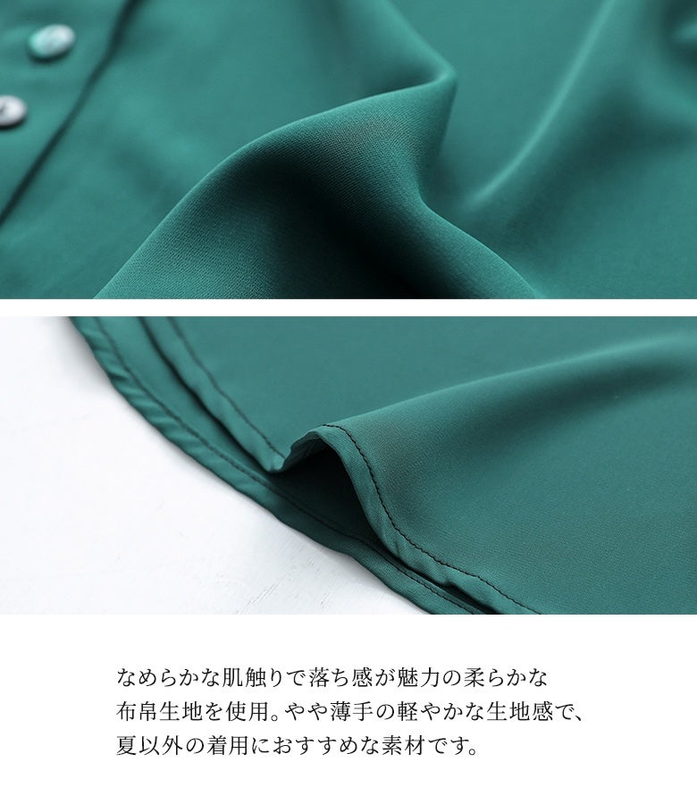 肌触り滑らかで柔らかく、とろんと落ち感のある生地を使用。やや薄手の軽やかな生地感でロングシーズン着用いただけます。