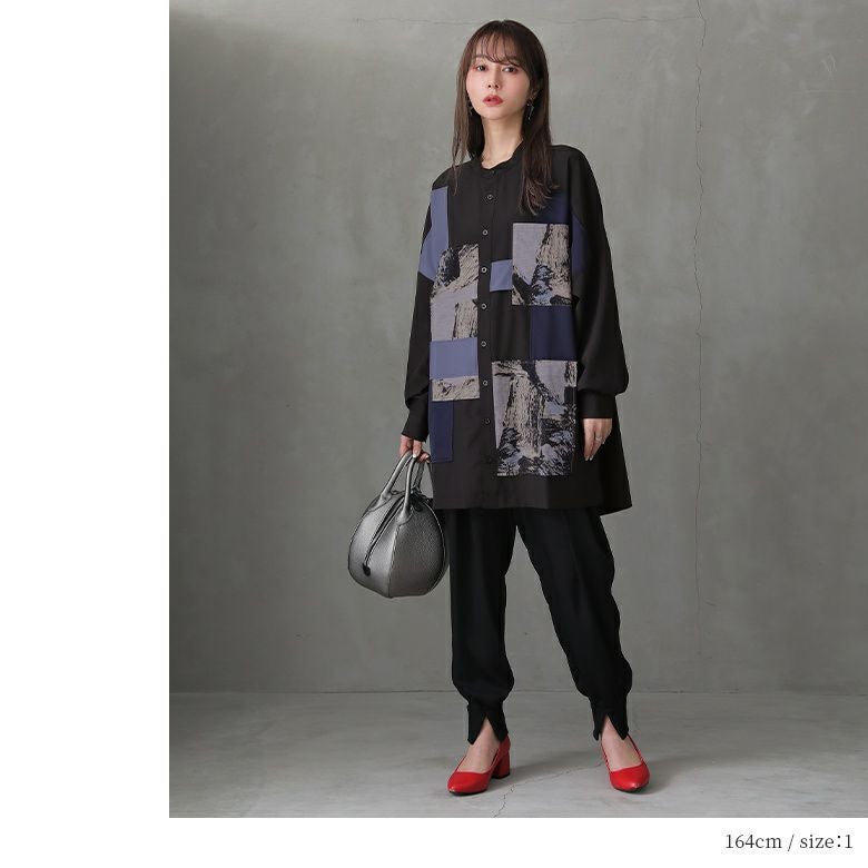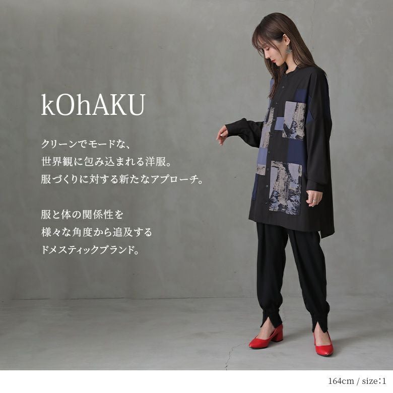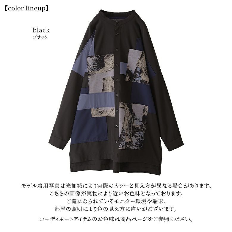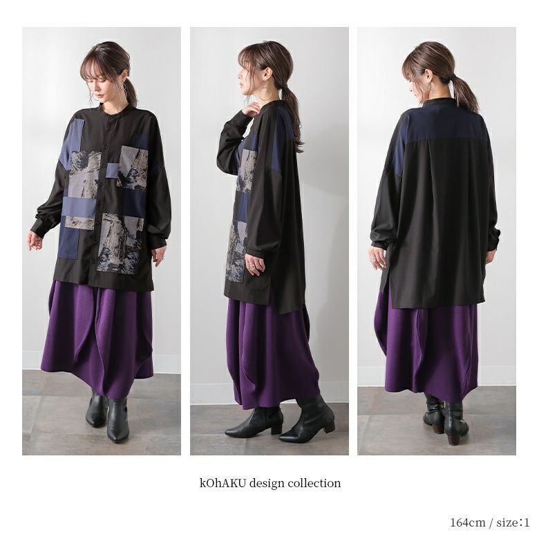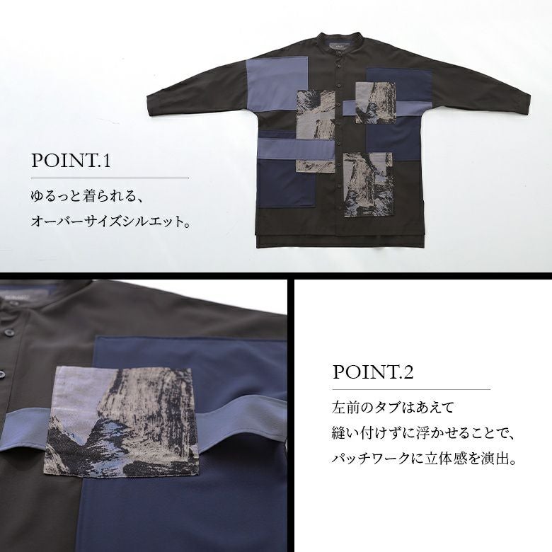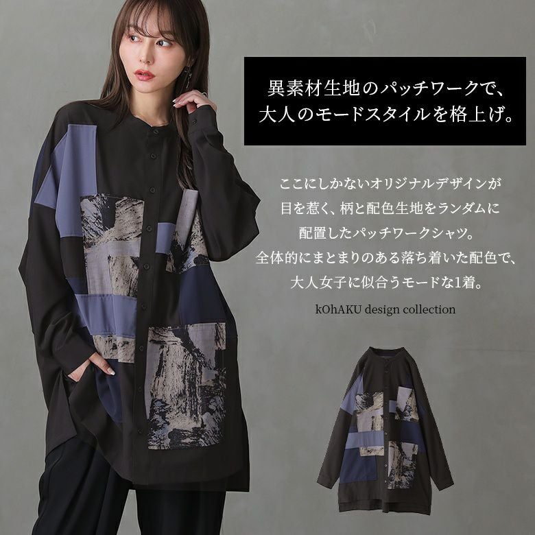 大人のモードスタイルを格上げする≪kOhAKU≫パッチワークデザインロングシャツです。