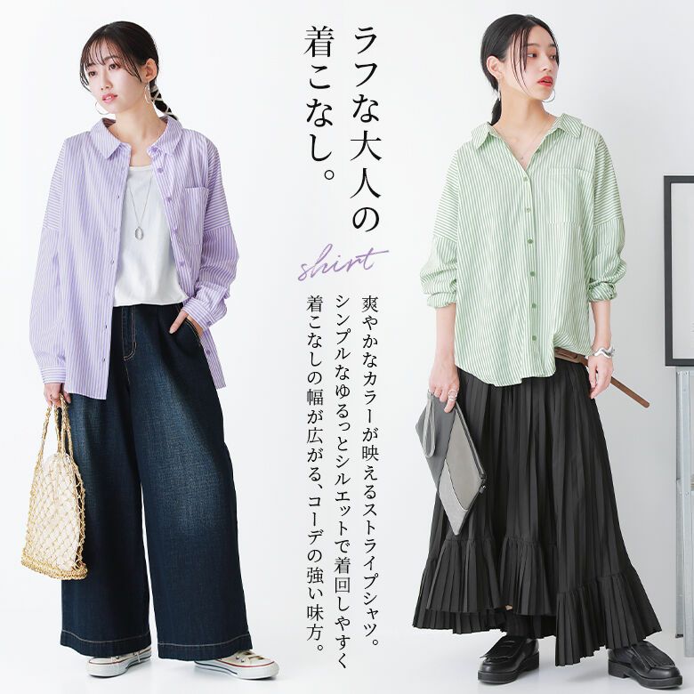 爽やかなカラーがコーデに映える、ラフな大人のストライプ柄シャツ♪