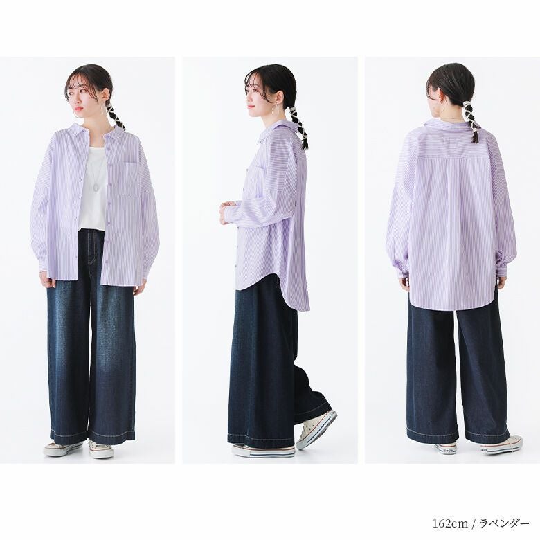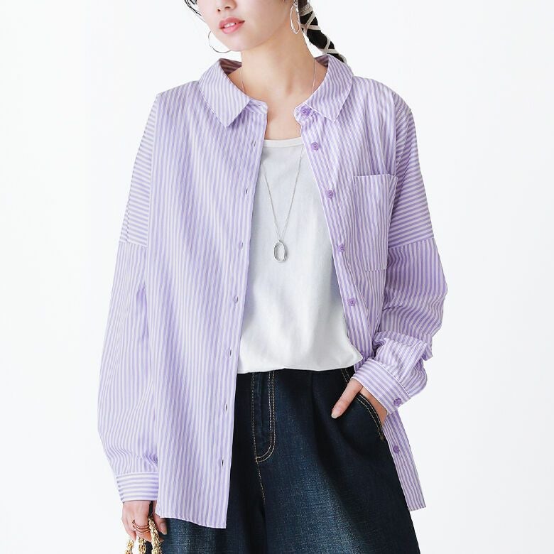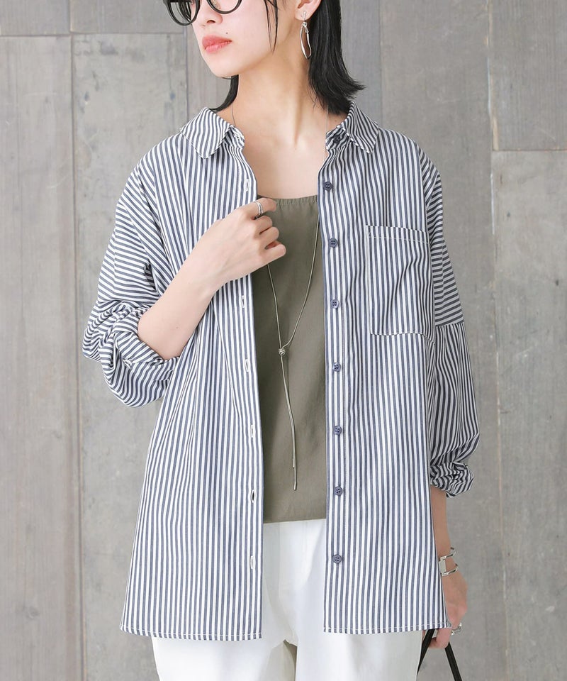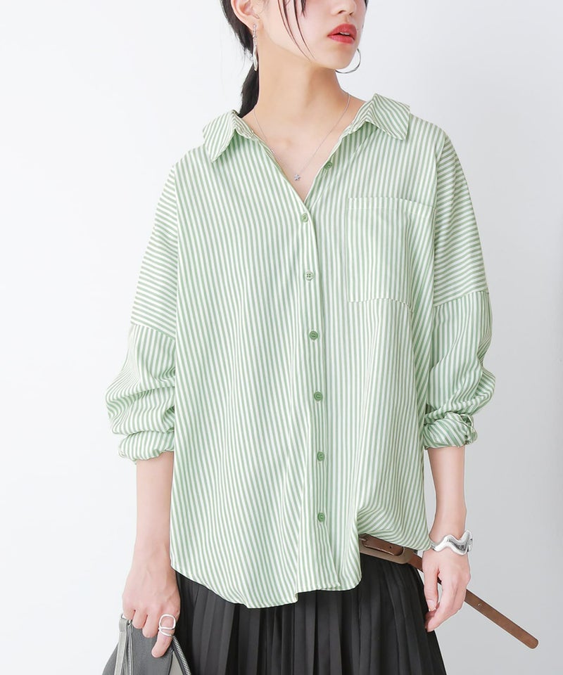 爽やかカラーがコーデに映える、大人のストライプ柄シャツ♪