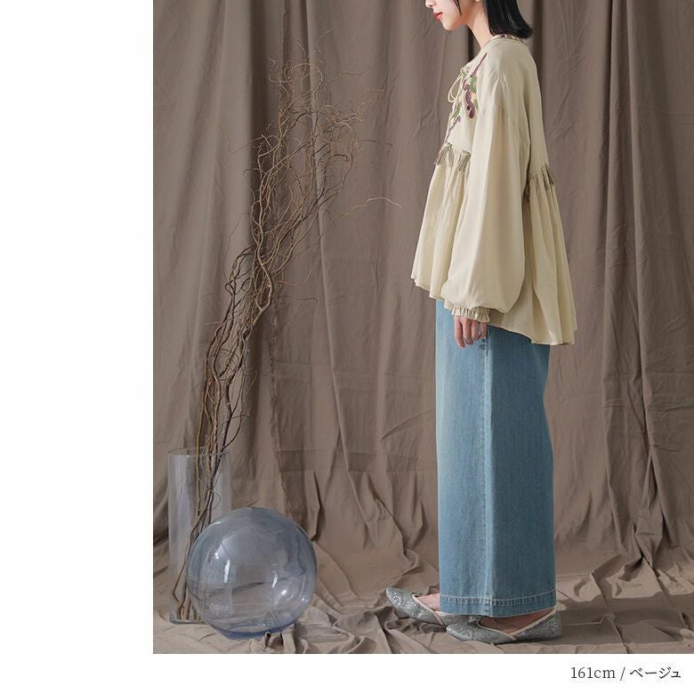 『ビーズ刺繍ギャザーブラウス』