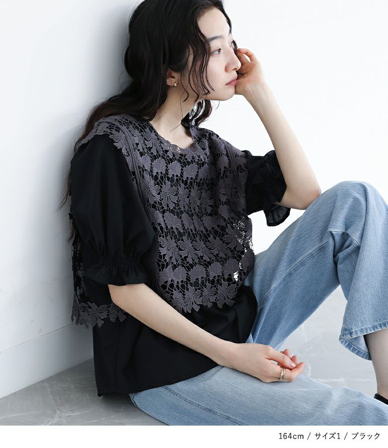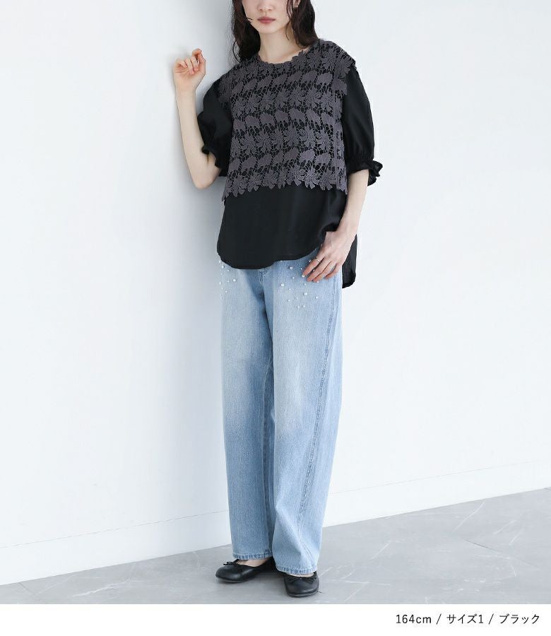 【普段着用】 Tops: L Bottoms: L | 【1】 袖丈:ひじ上3cm位 着丈:ヒップ真ん中位 腕周り:ジャスト バスト:ジャスト 全体:スッキリ