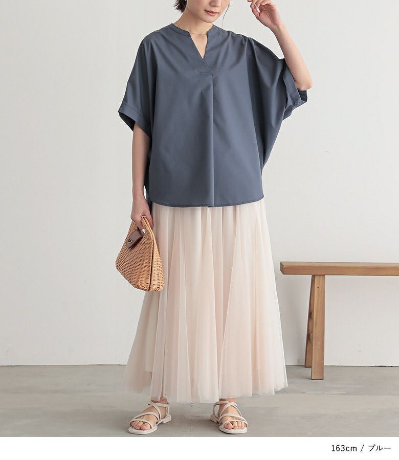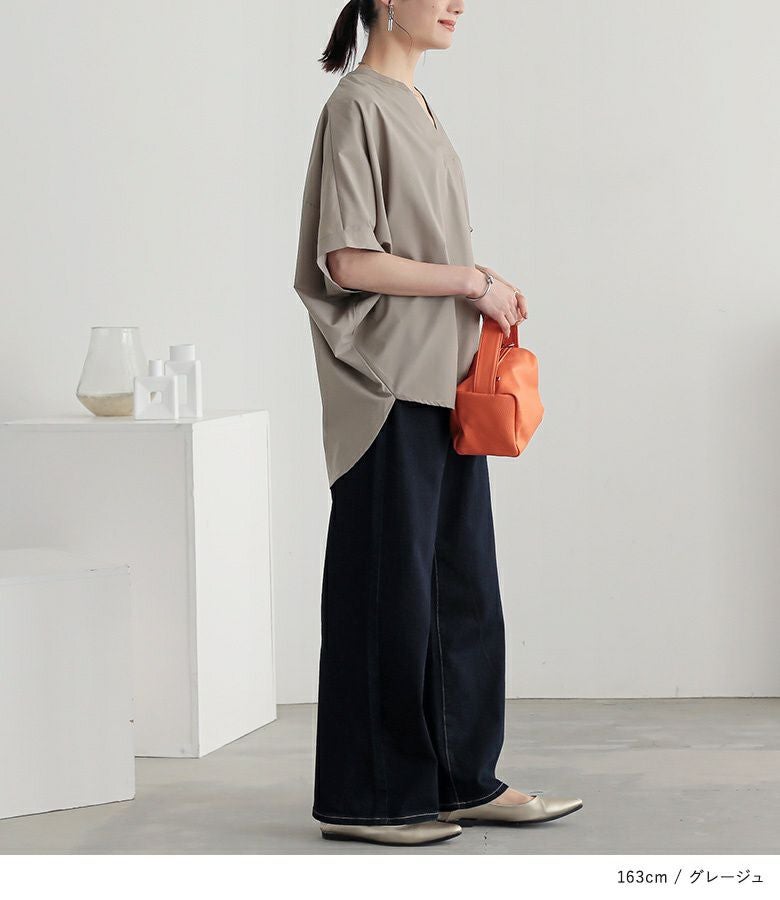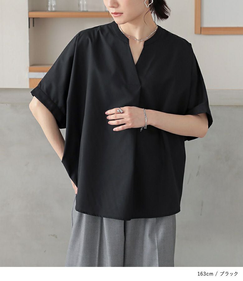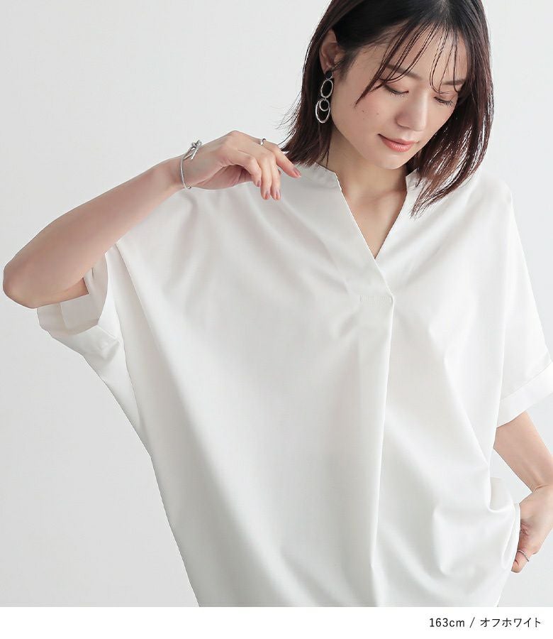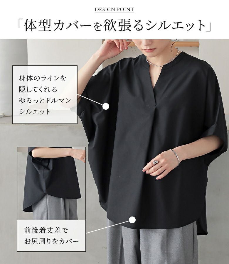 抜け感でサマになる、大人顔半袖ドルマンシャツ。