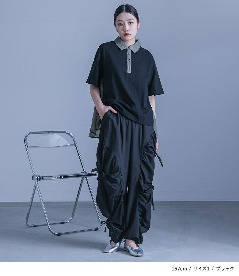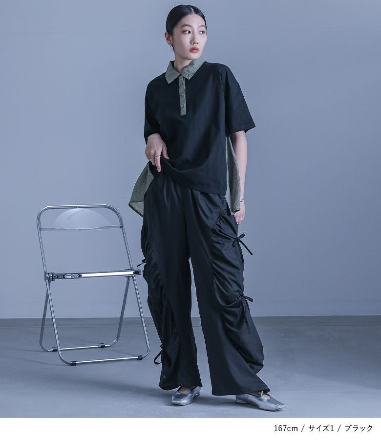 【普段着用】 Tops: M Bottoms: S/M | 【1】 袖丈:ちょうどひじ位 着丈:ヒップ下少し見える位 腕周り:ゆったり バスト:ゆったり 全体:ゆったり