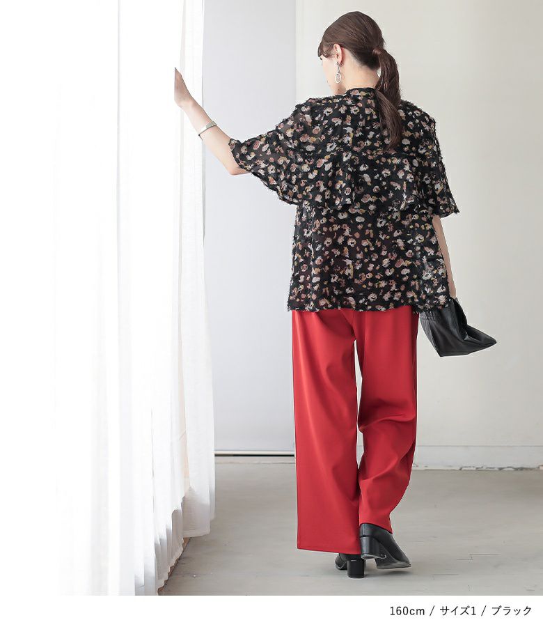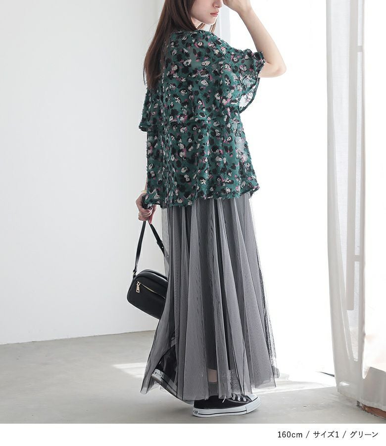ゆったり着用できました。フレア袖がさりげなく可愛らしさをプラスしてくれますが、大人っぽく着られる一枚です。
