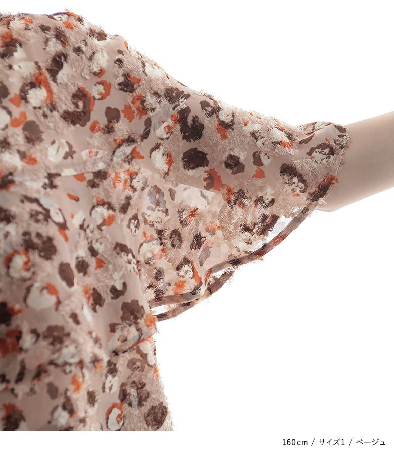 【2】 袖丈:ちょうどひじ位 着丈:ヒップ下少し見える位 腕周り:ゆったり バスト:ゆったり 全体:ゆったり