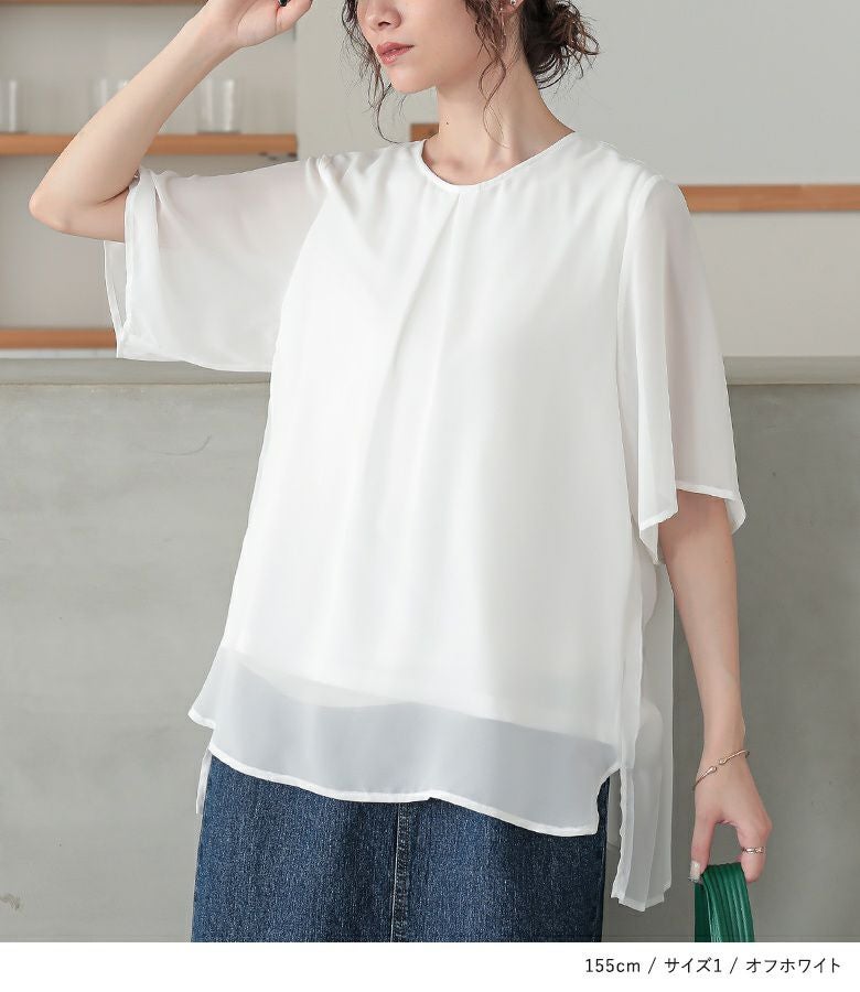 【普段着用】 Tops: L/LL Bottoms: L/LL | 【1】 袖丈:ちょうどひじ位 着丈:ヒップがちょうど隠れる位 腕周り:ジャスト バスト:ややゆったり 全体:ややゆったり