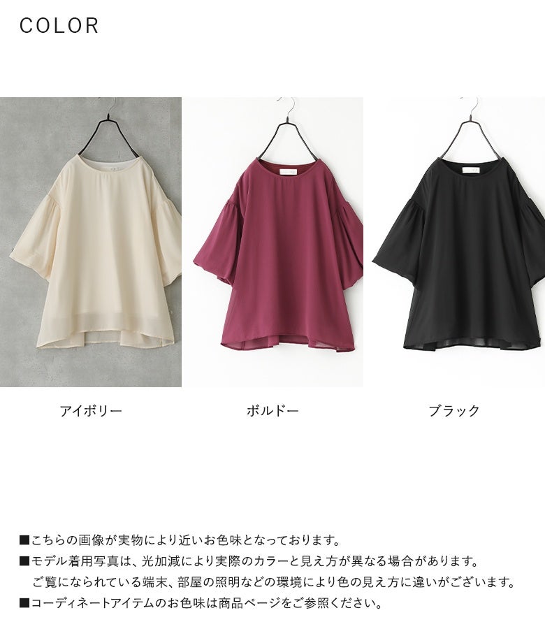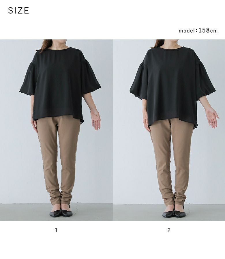 【普段着用】 Tops:S/M Bottoms: M/L | 【1】 袖丈:ひじ上3cm位 着丈:ヒップ下少し見える位 腕周り:ゆったり バスト:ゆったり 全体:ゆったり
