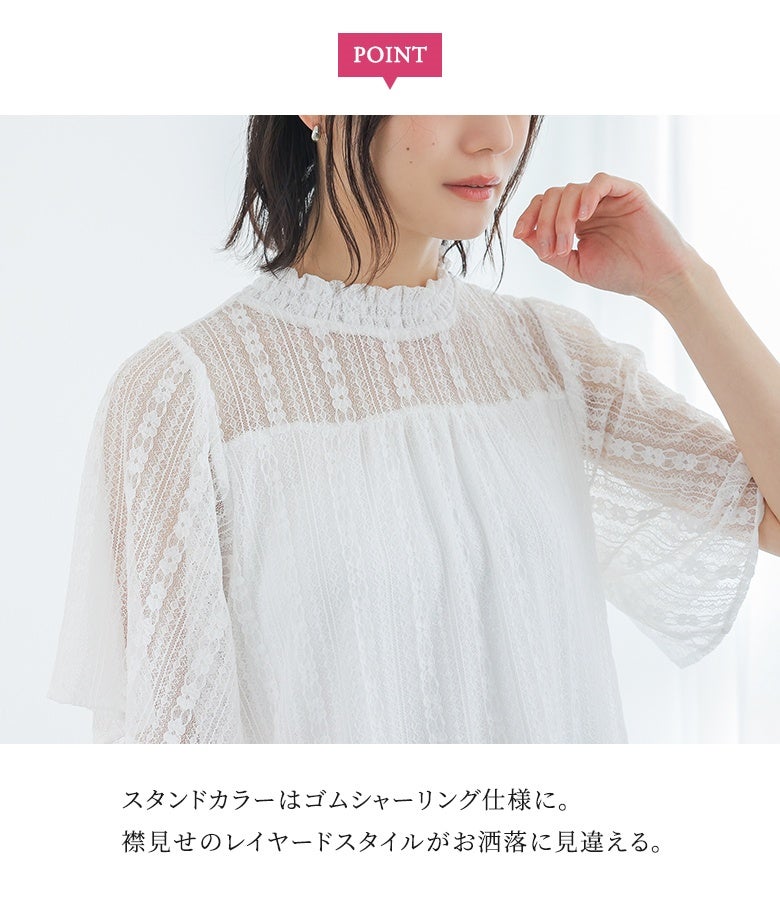 5. 『n'OrLABELスタンドネック総レース半袖ブラウス』※メール便可※【10】