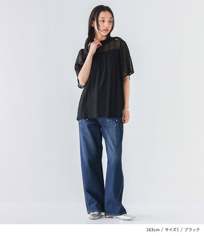 『n'OrLABELスタンドネック総レース半袖ブラウス』