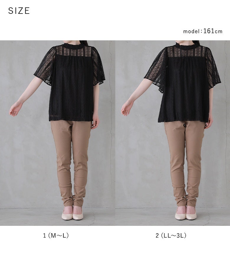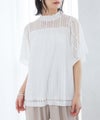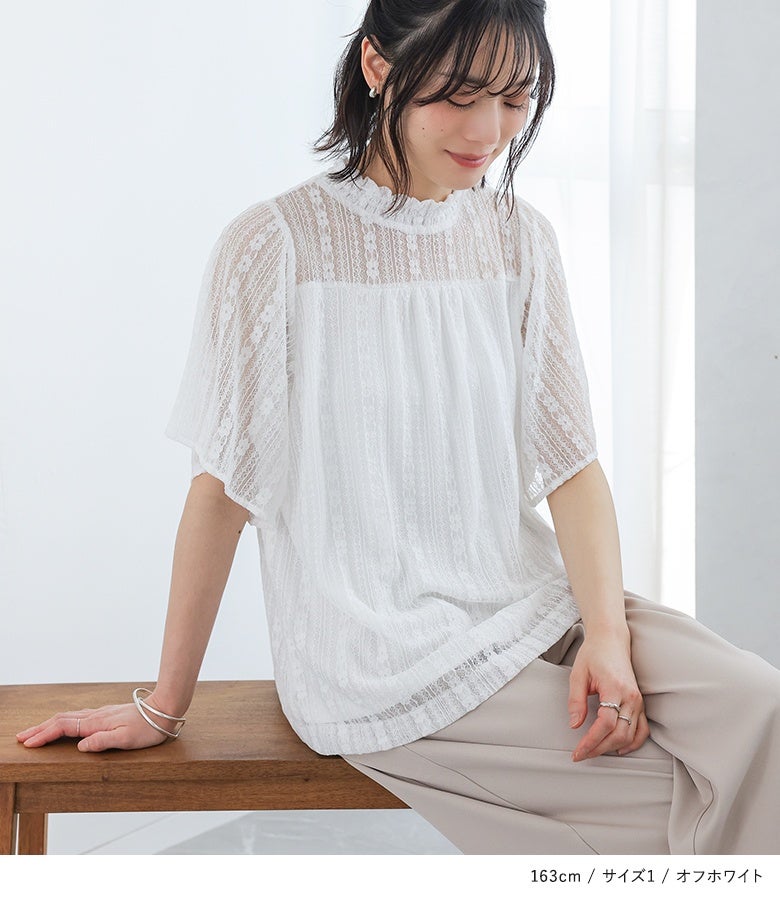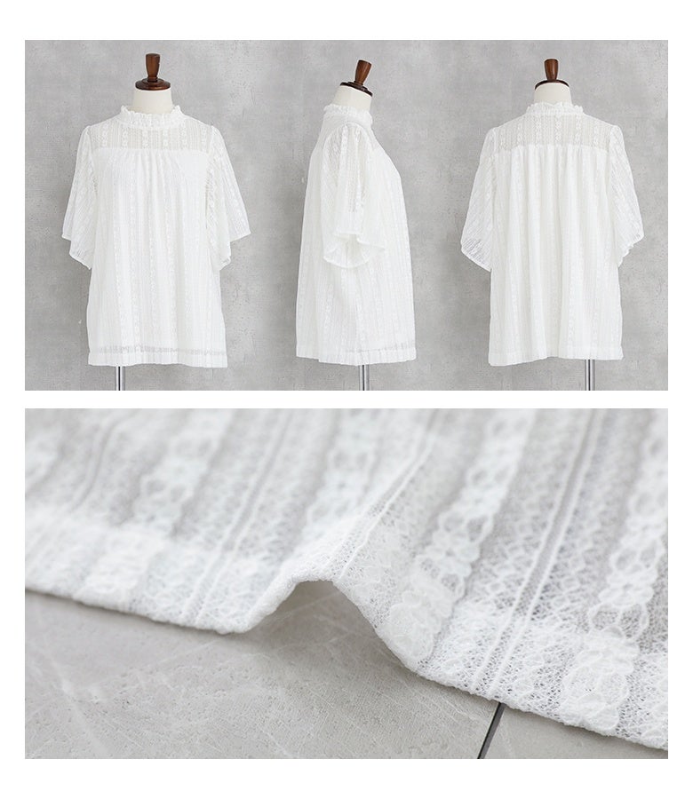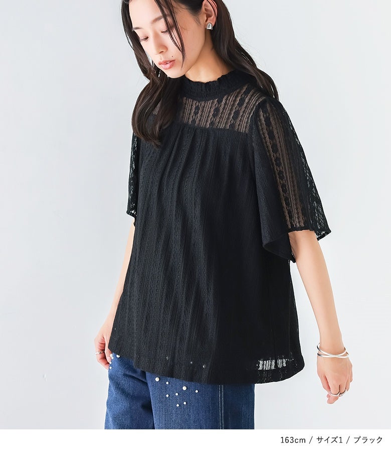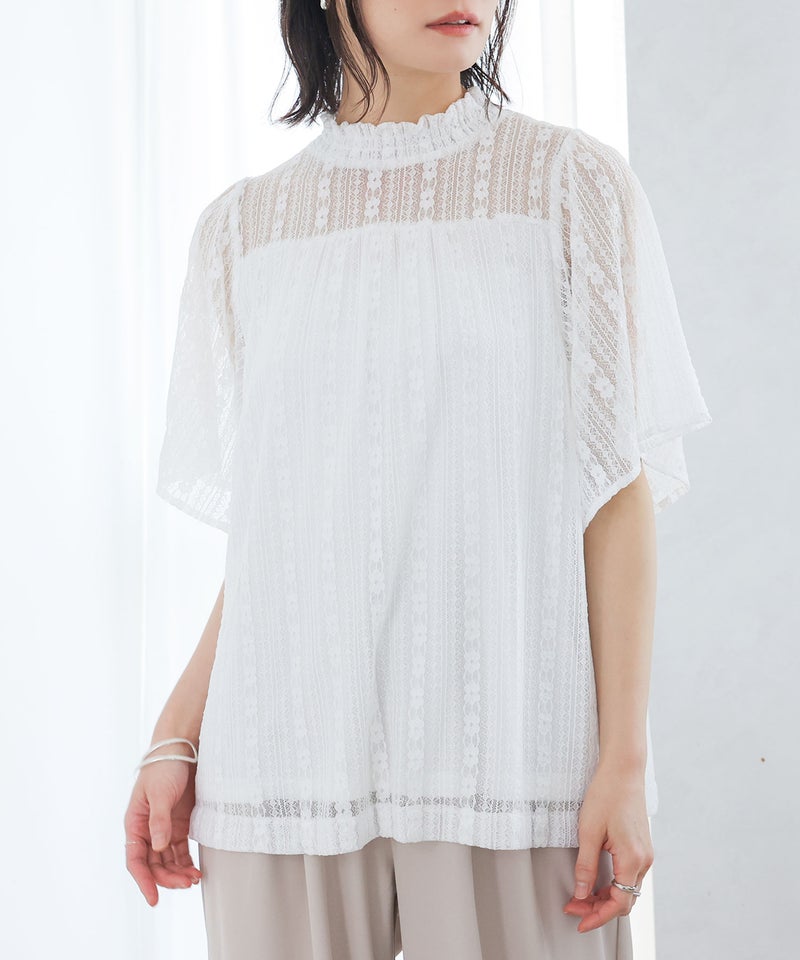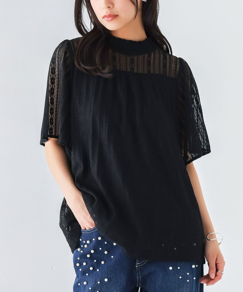 [ID]tdn0387[n'OrLABELスタンドネック総レース半袖ブラウス]