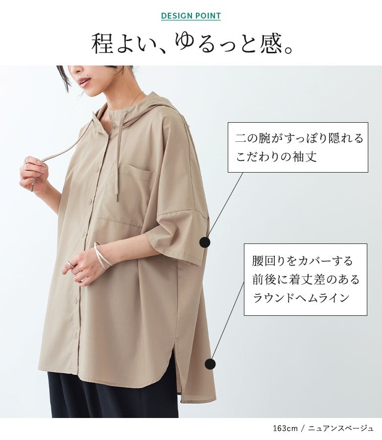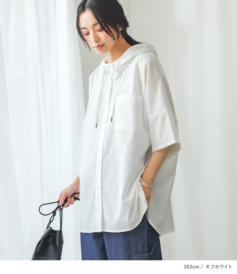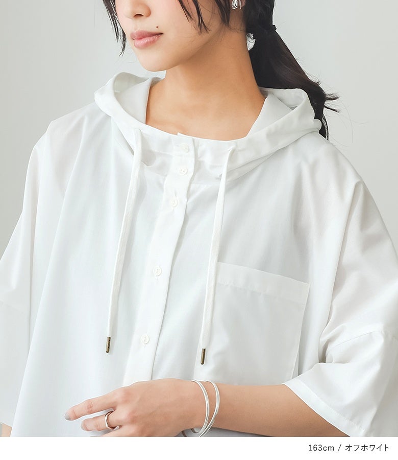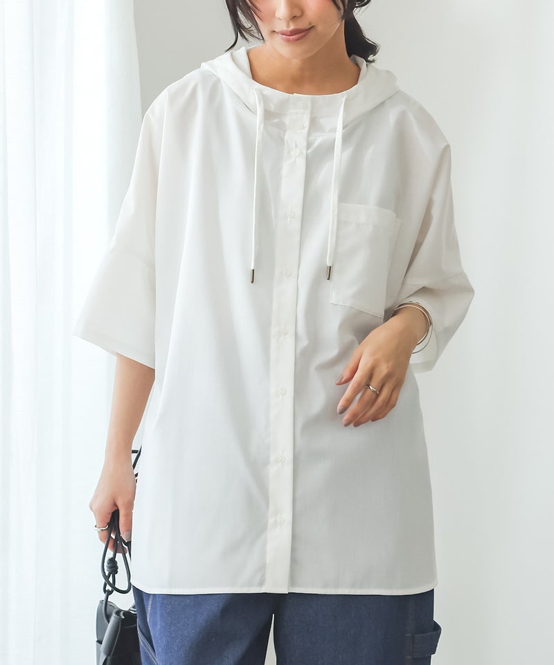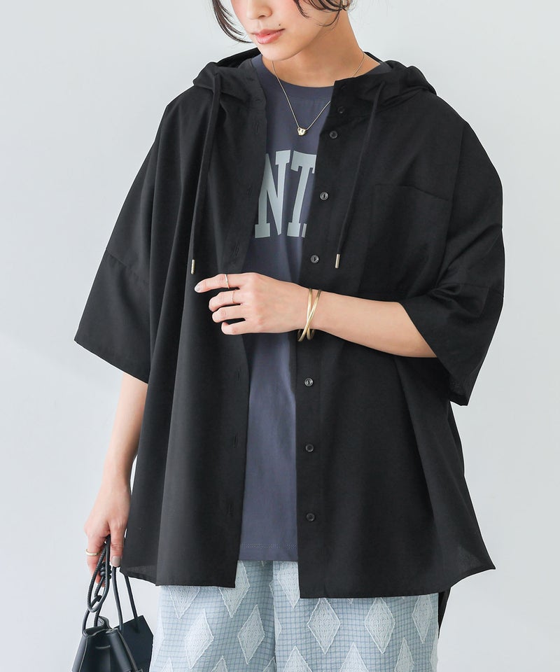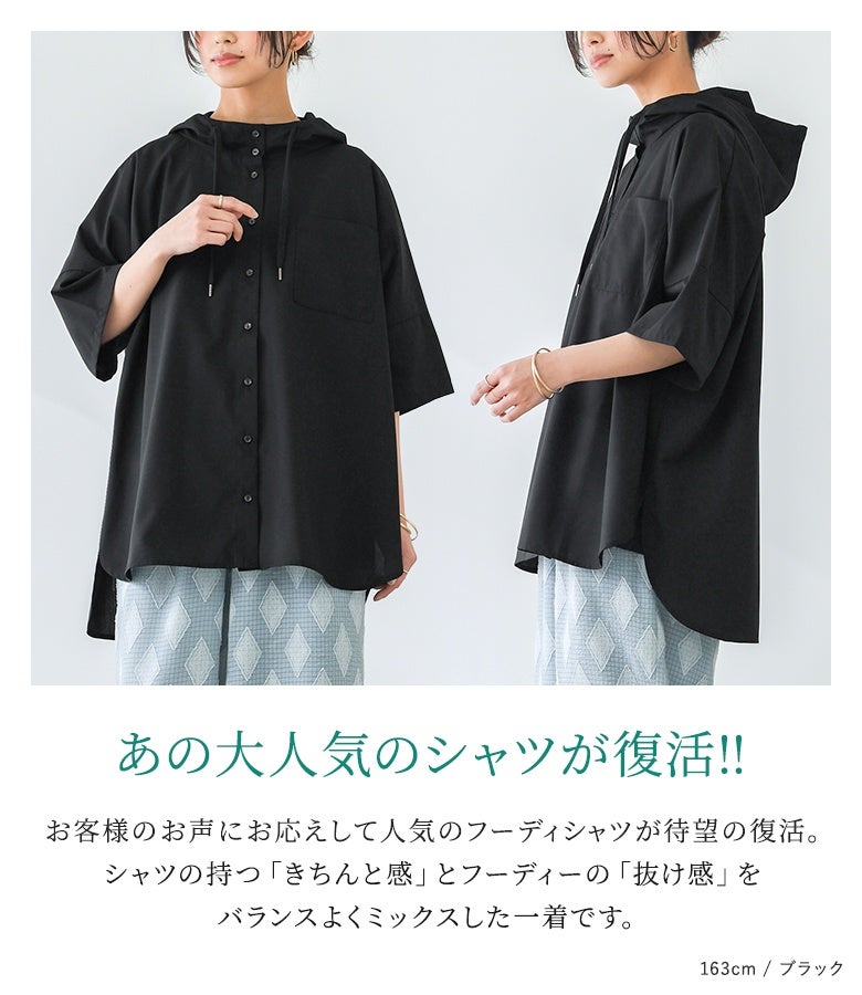 ラフにこなれる五分袖フーディーシャツ♪