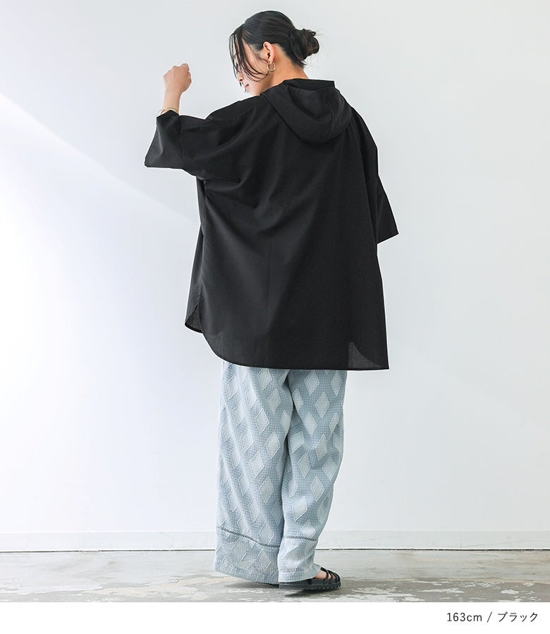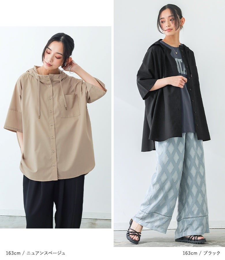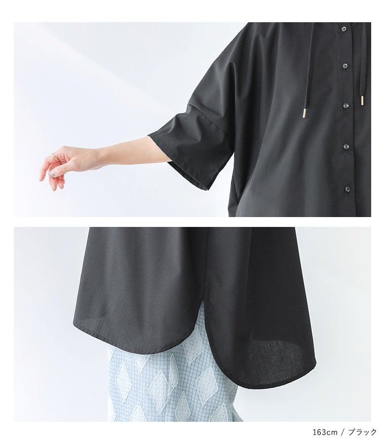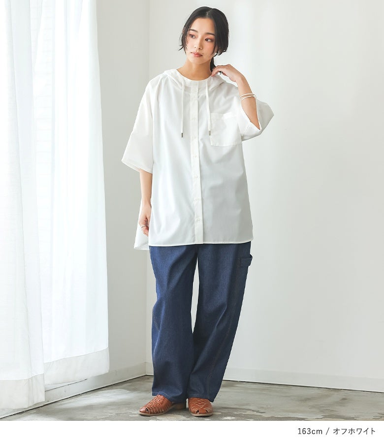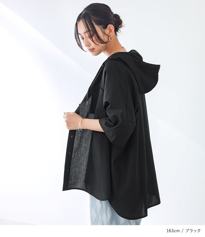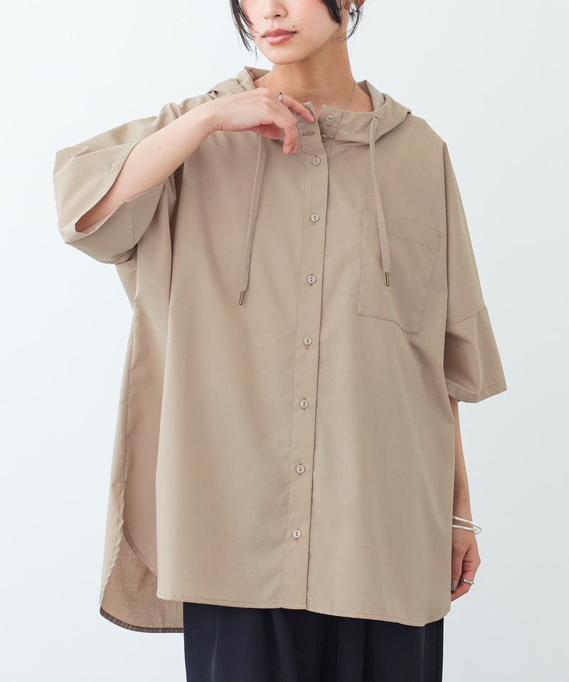 ラフにこなれる五分袖フーディーシャツ♪