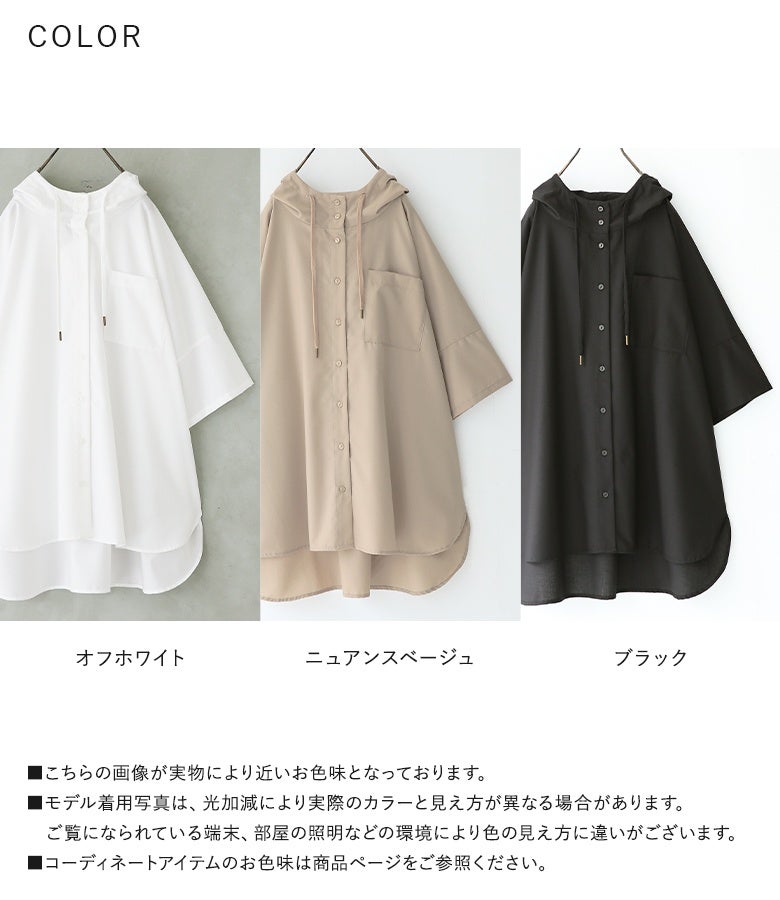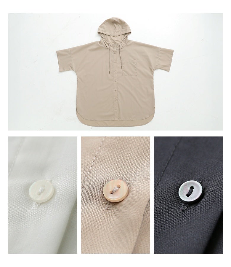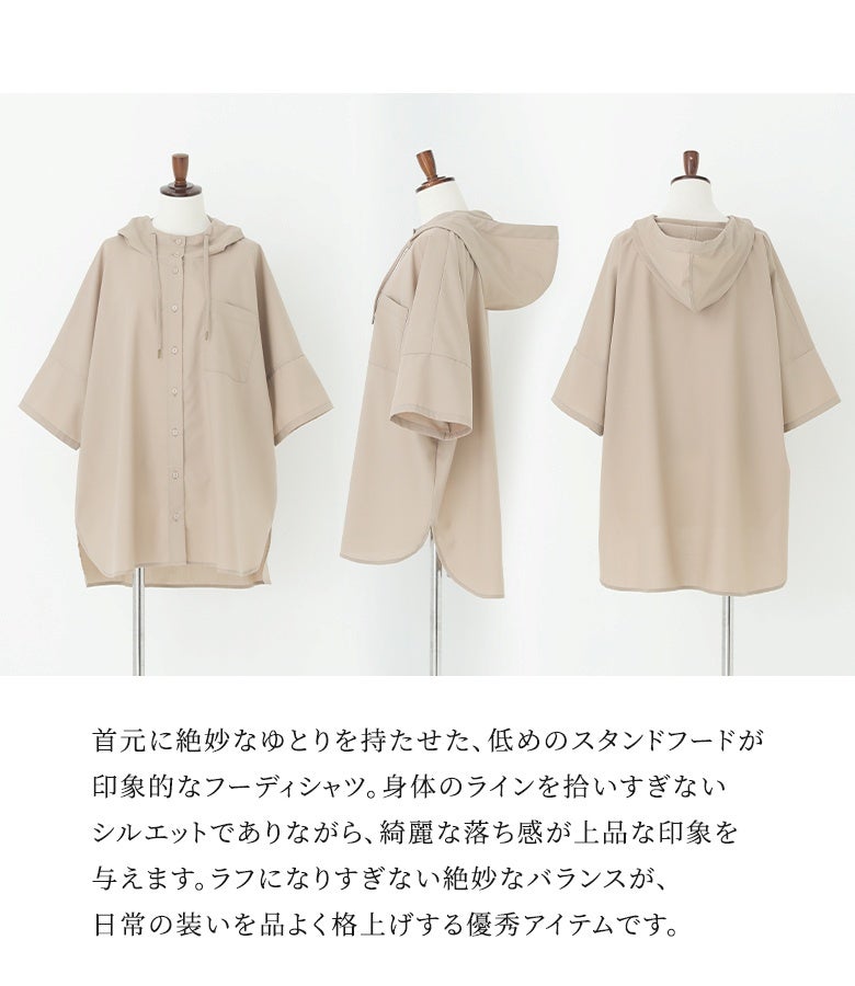 『n'OrLABELスタンドフーディー五分袖シャツ』