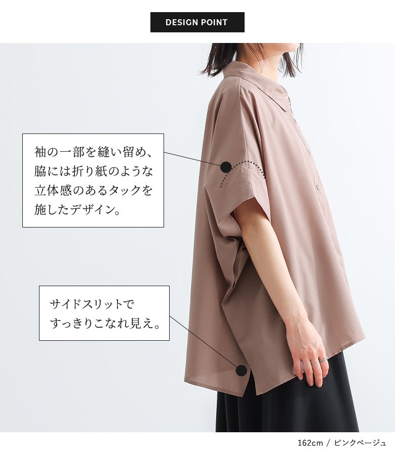 折り紙のような立体的のあるシルエットの袖タックが印象的。脇にサイドスリットを入れることで、すっきり見せてこなれた着こなしを実現します。