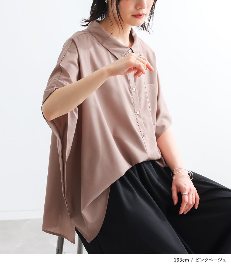 柔らかく、心地良い肌触りのシャツ生地を使用。しわになりにくく落ち感があり、きれいめにもカジュアルにも合わせやすい一着です。