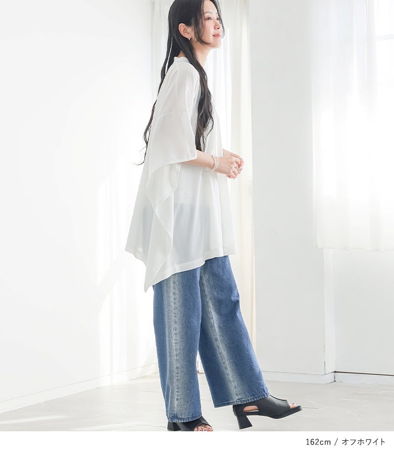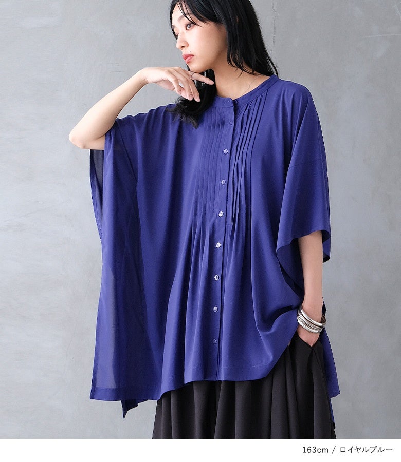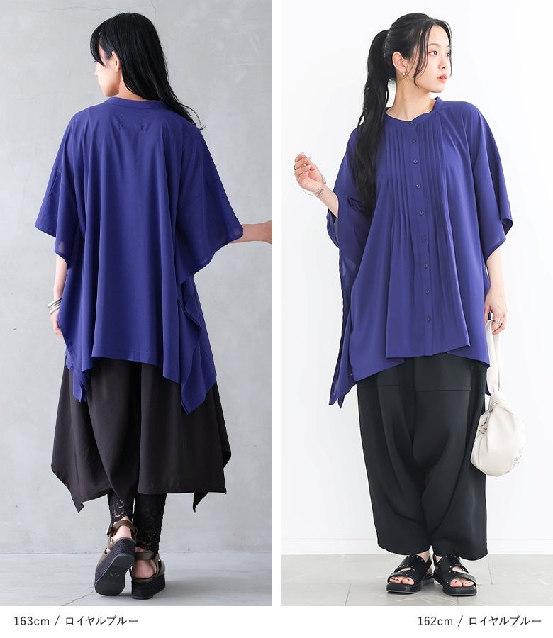 贅沢なドレープ感が動くたびに美しい、ポンチョ風デザインシャツ。