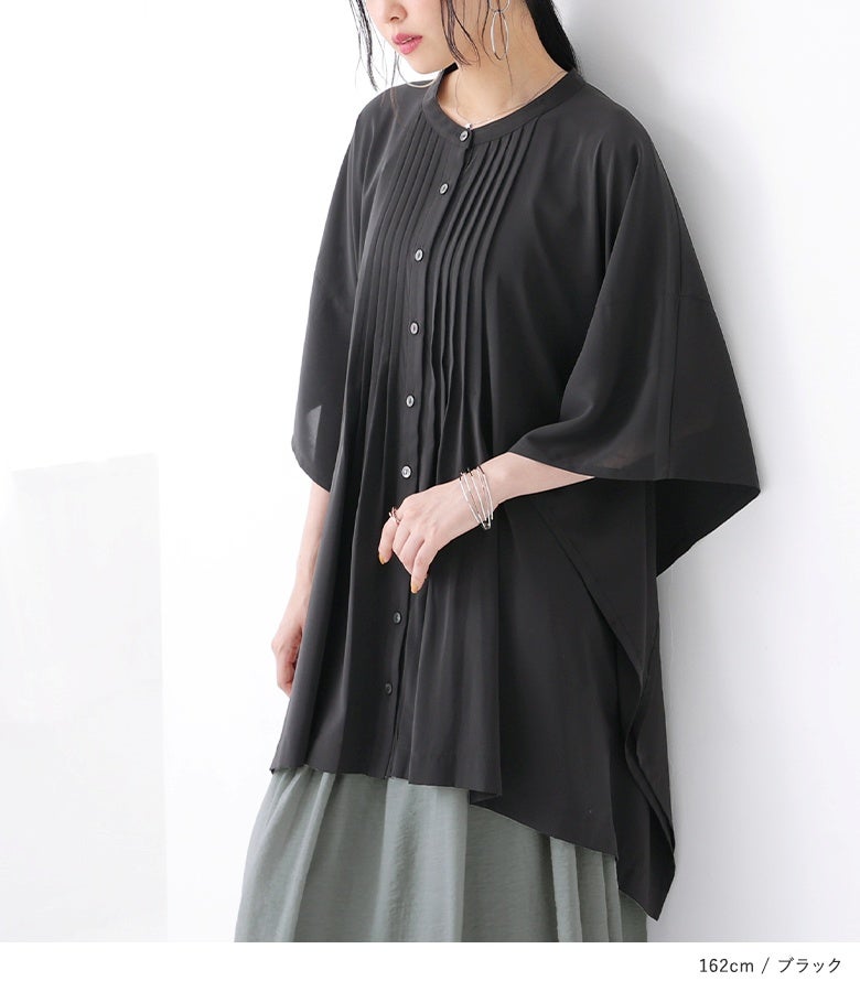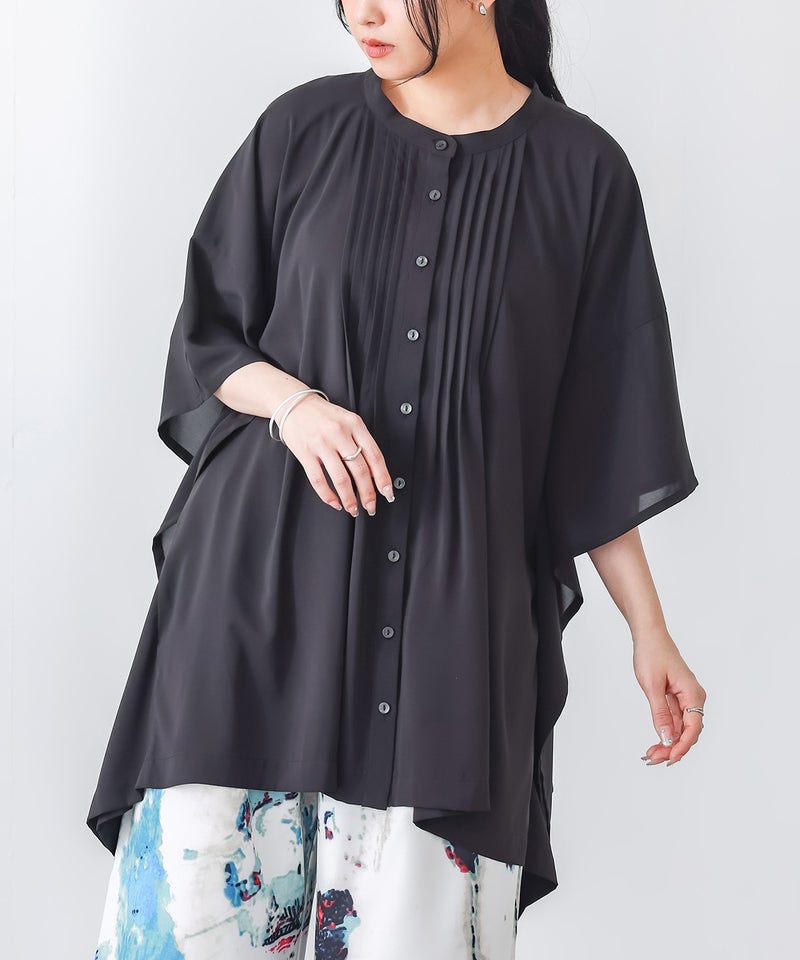 『n'OrLABELポンチョ風ピンタックシャツ』