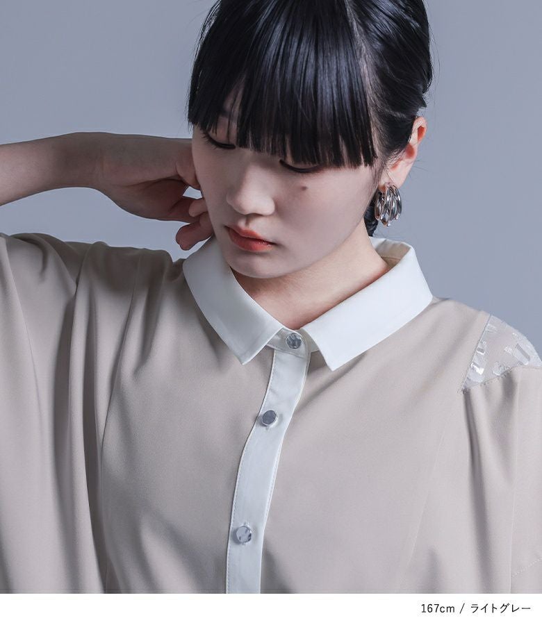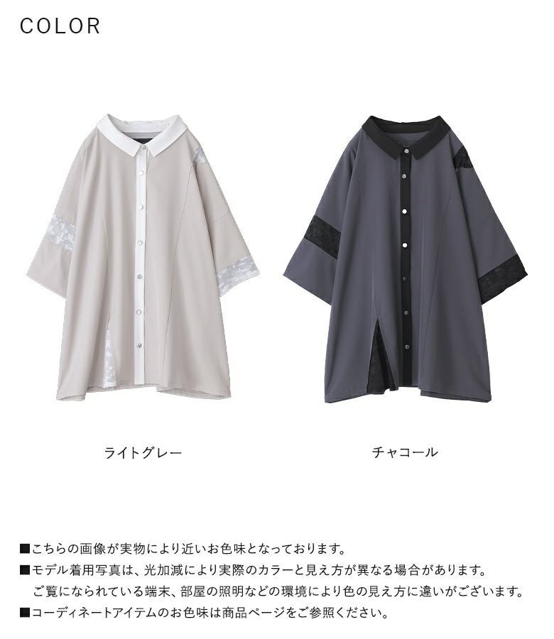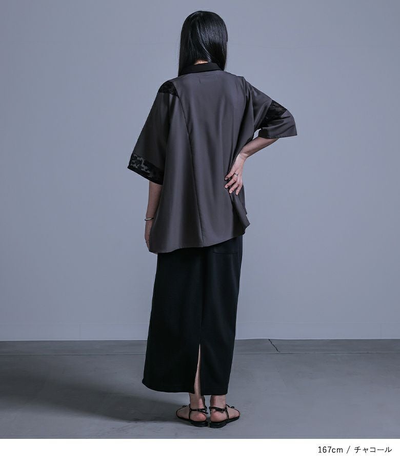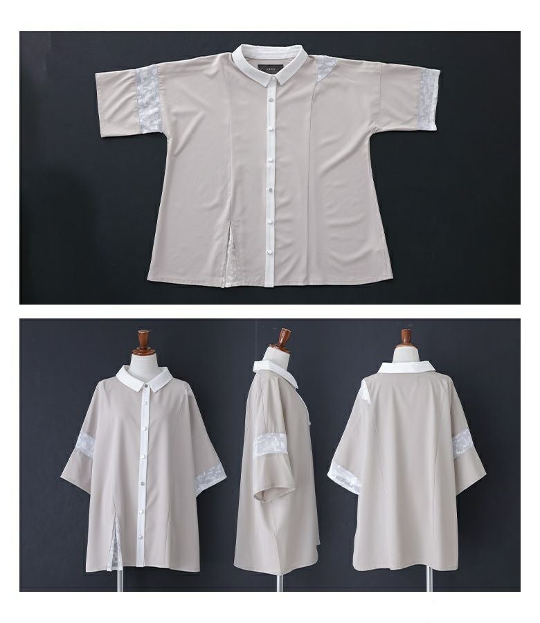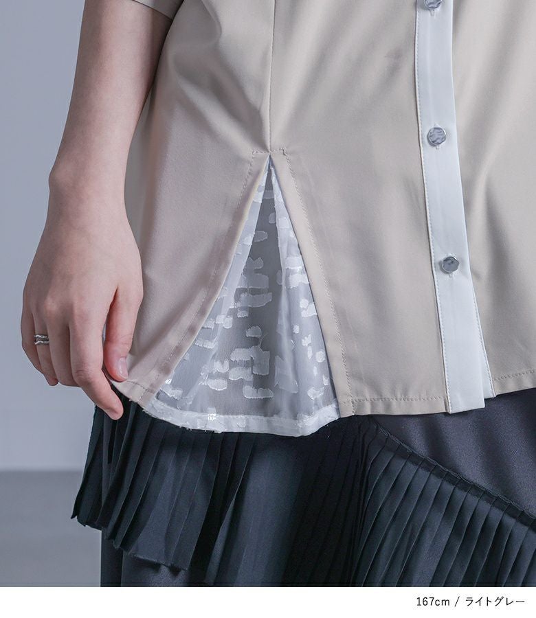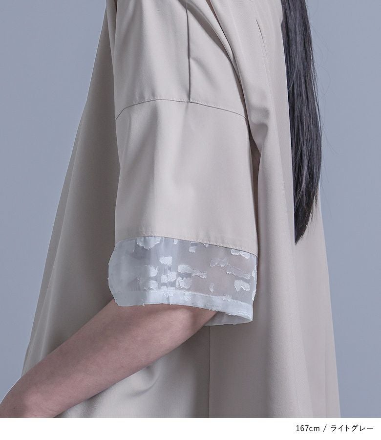 とろんとした落ち感のある肌触りの良い無地のシャツ生地と、程よい透け感の柔らかなカットジャカード生地の組み合わせ。涼しげな抜け感を演出し、ロングシーズンでお洒落を楽しめます。