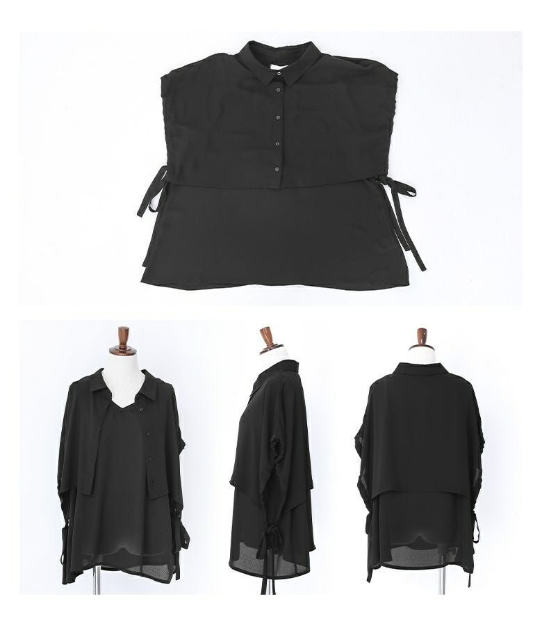 【70%OFF】選べるM~3Lサイズ展開!タンクトップ×ケープデザインのレイヤード風シャツ。
