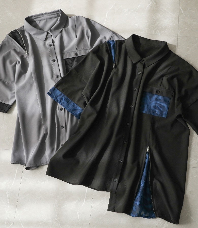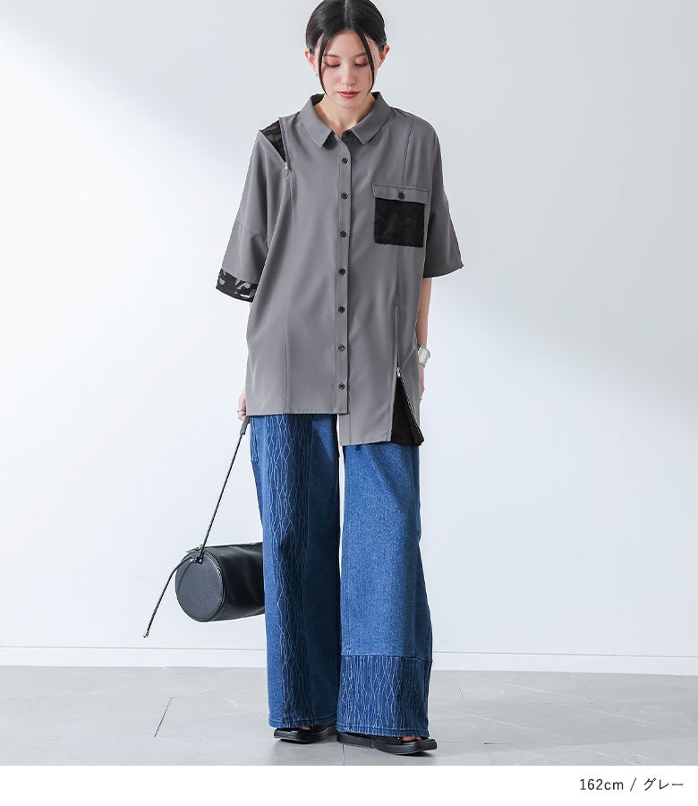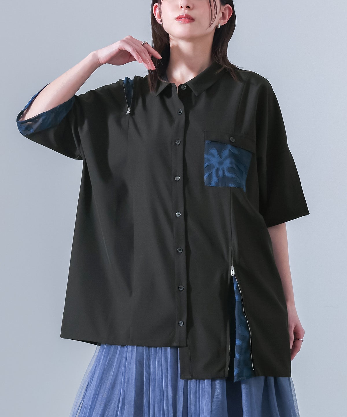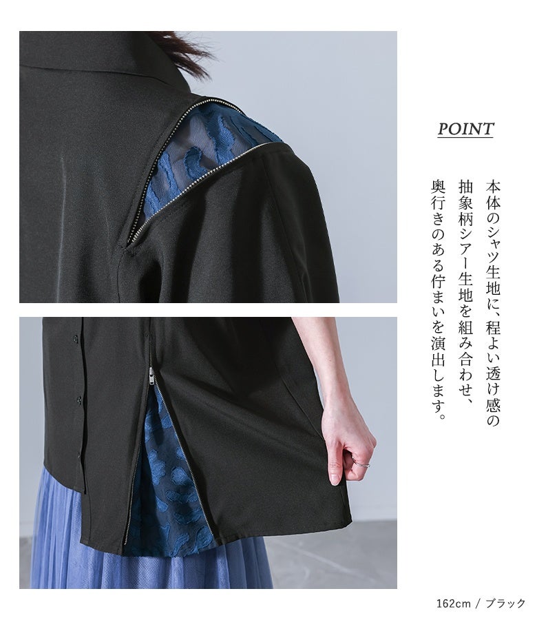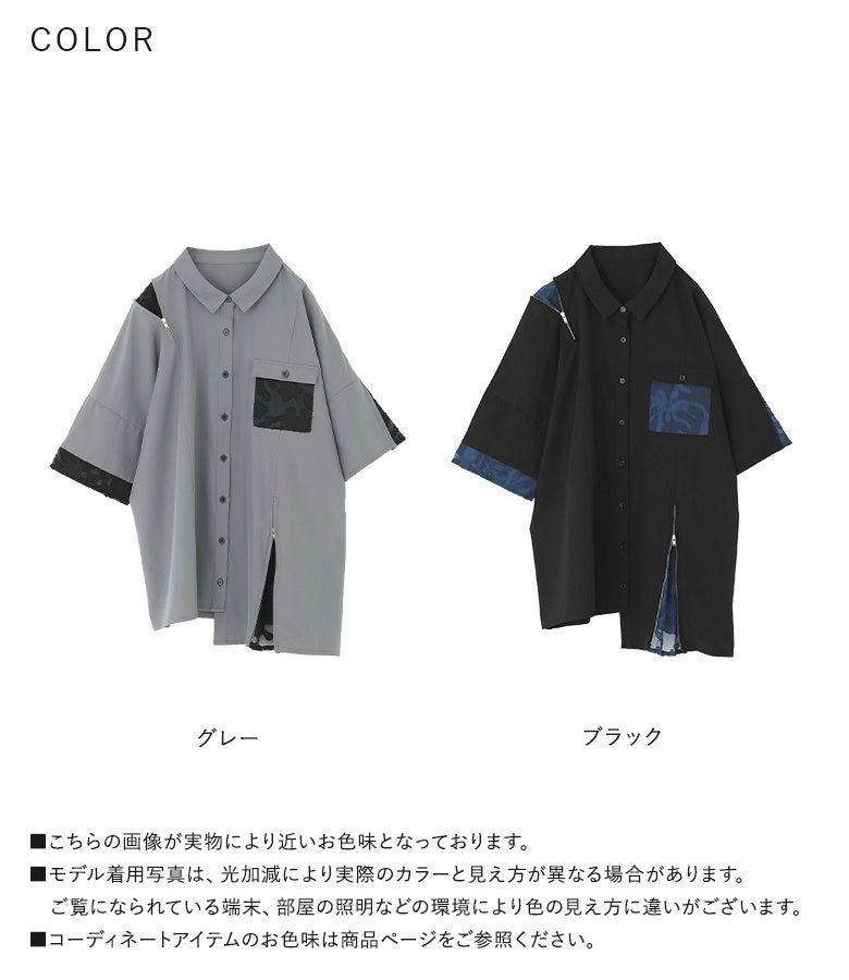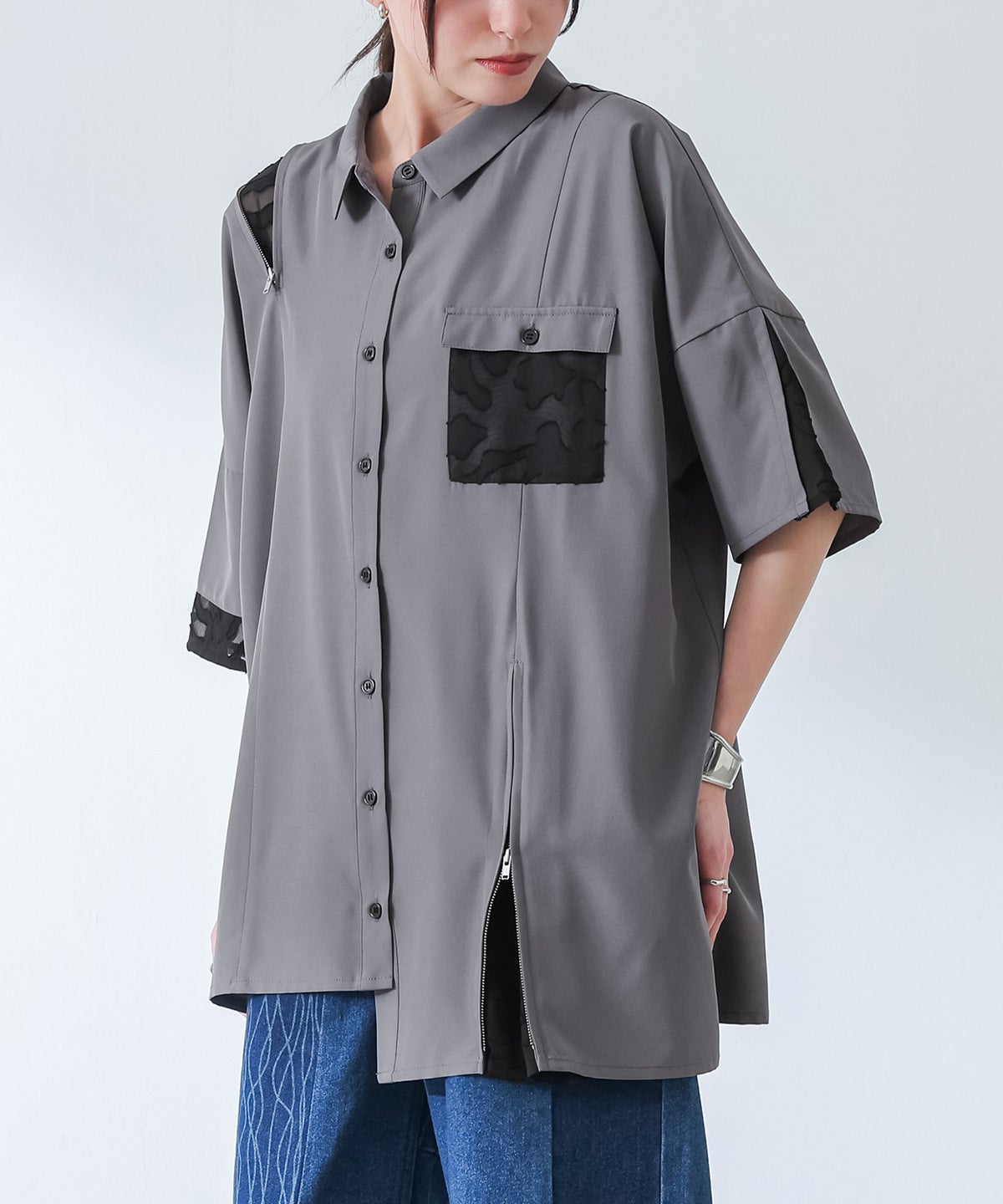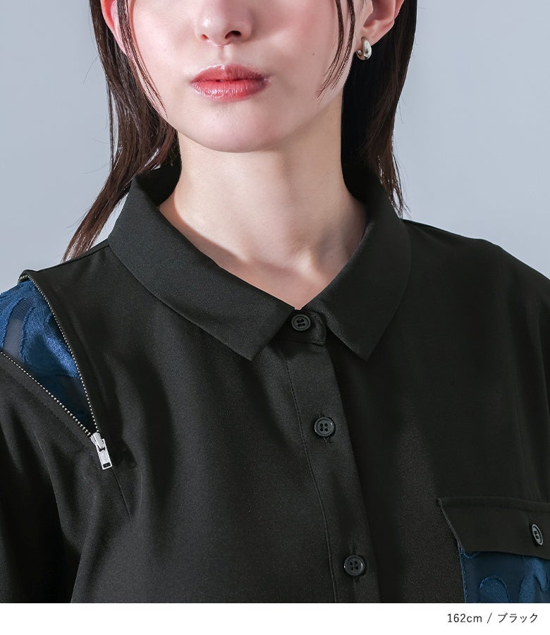 他の画像を見る シャツ生地×シアー生地の遊び心があふれる異素材切り替えシャツ。 『kOhAKUシアー切替ファスナーシャツ』※メール便可※【10】 ¥ 6,980 税込 販売開始前です。 販売期間 2026/04/06 10:00 〜 2027/03/27 23:59 (0)