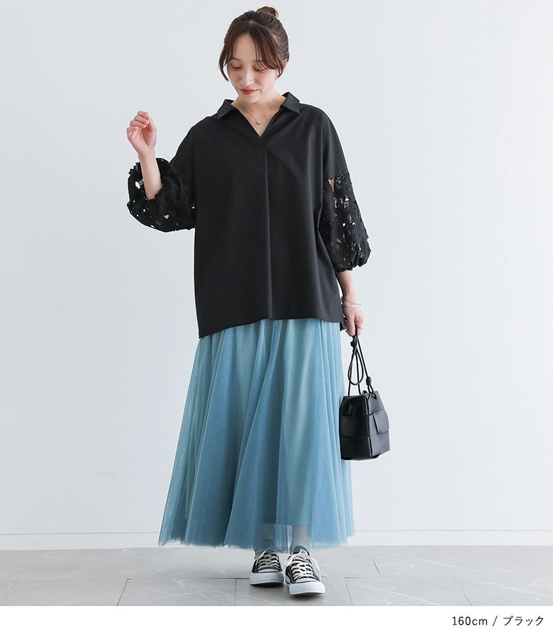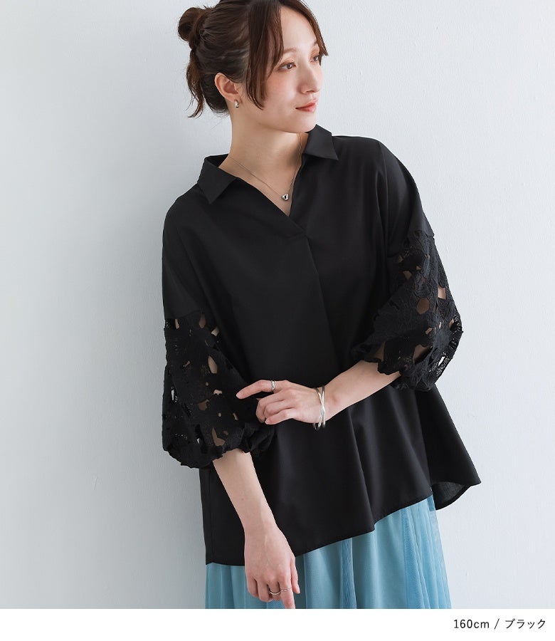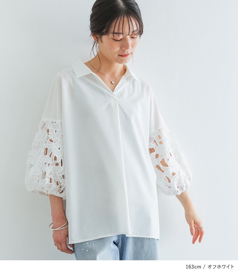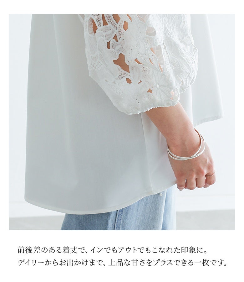 他の画像を見る 選べる2サイズ展開!華やかさとシンプルさが調和したブラウス。 『somari imaginationコットンレースリボン付きブラウス』※メール便可※【10】 ¥ 6,980 税込 (0)