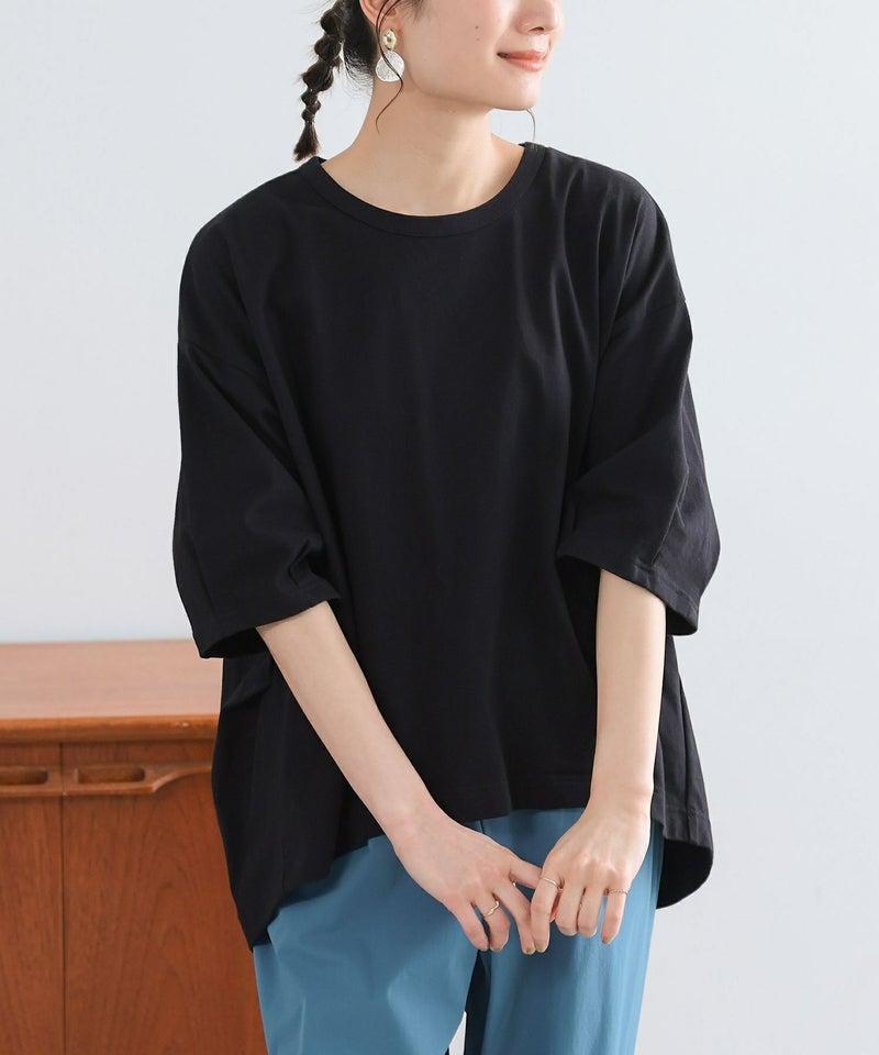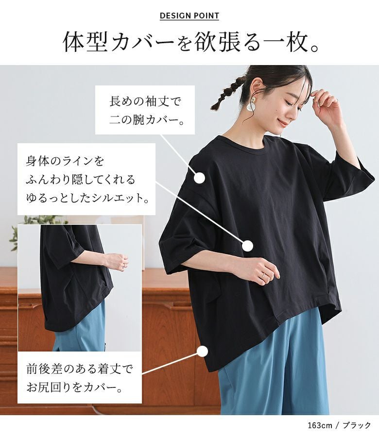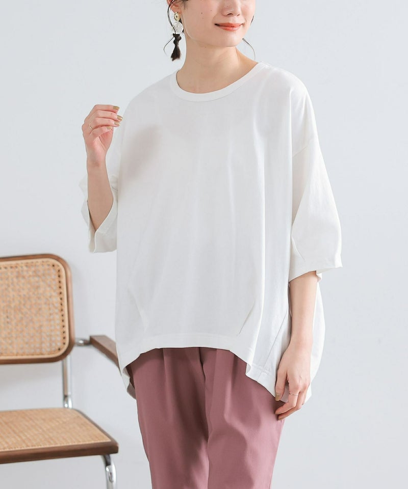 身体のラインをふんわり隠してくれる、ゆるっとしたシルエットのカットソー。