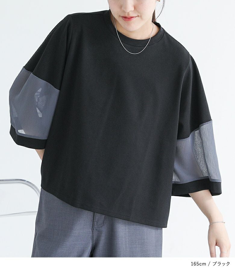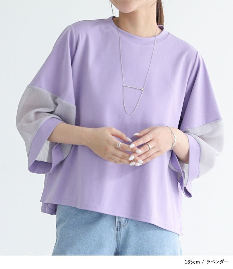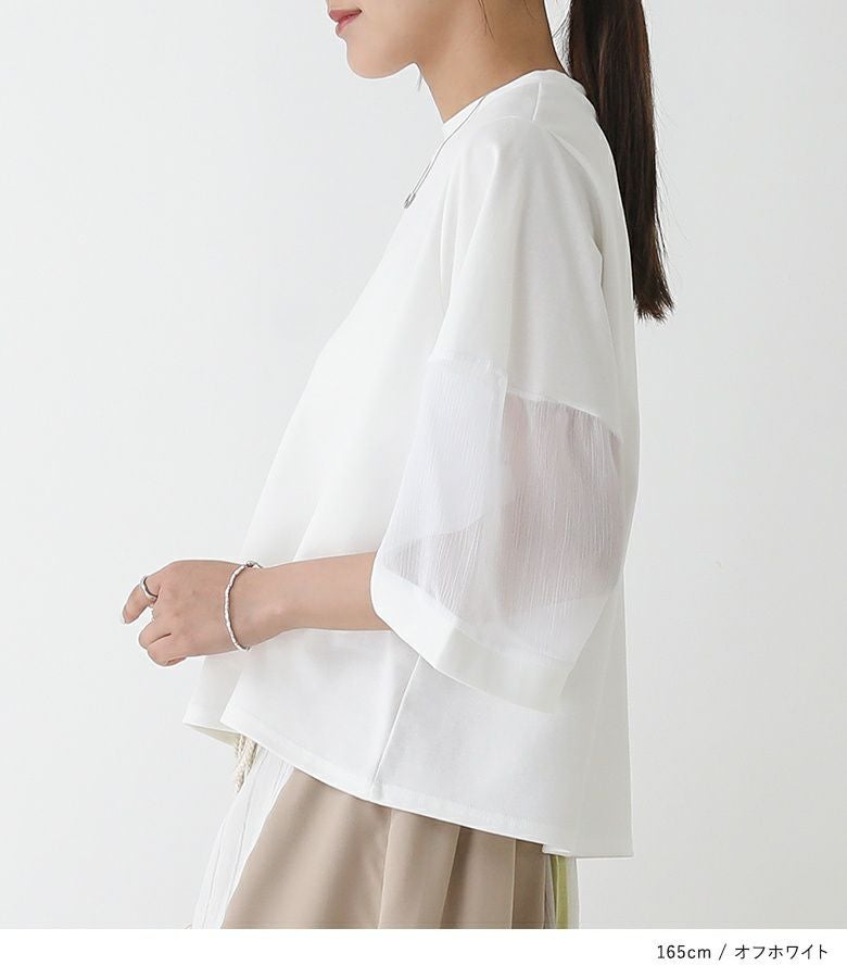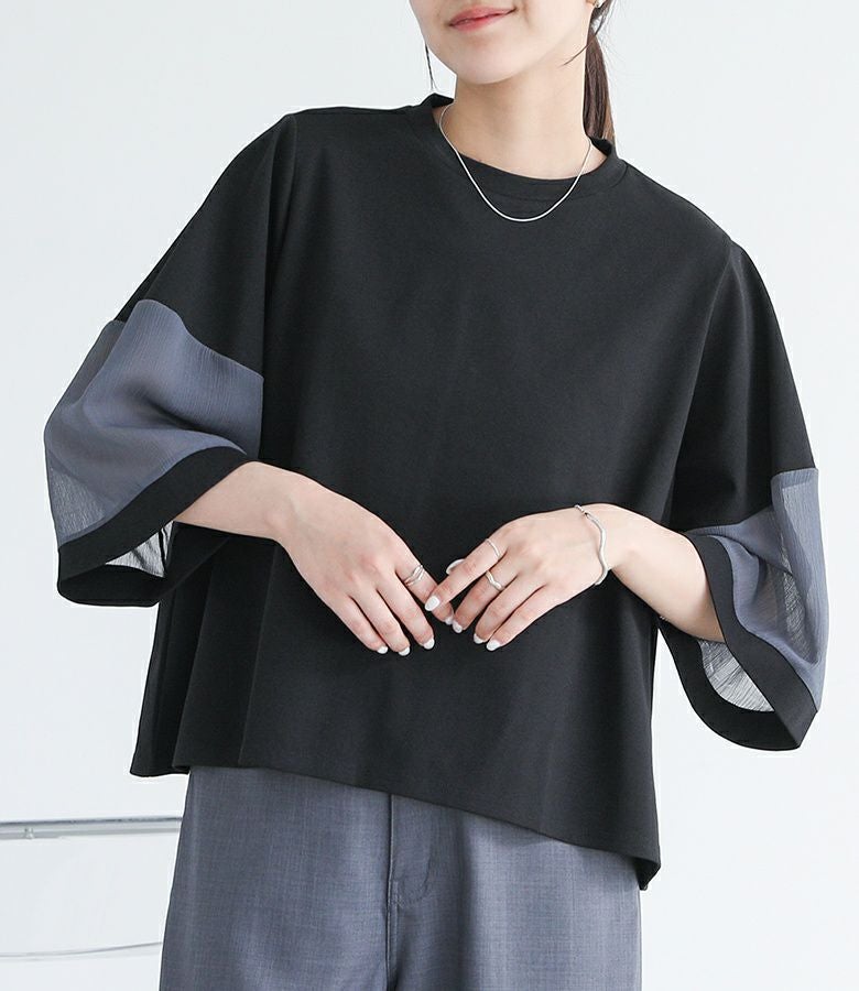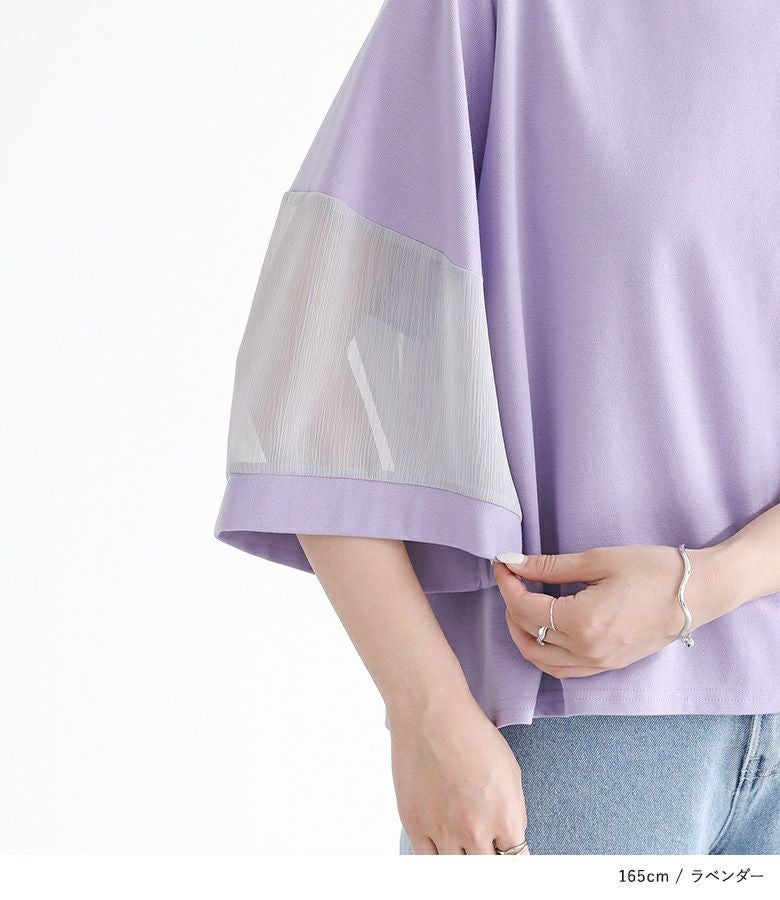 見た目も着心地も涼し気な袖シアー切り替えカットソー。